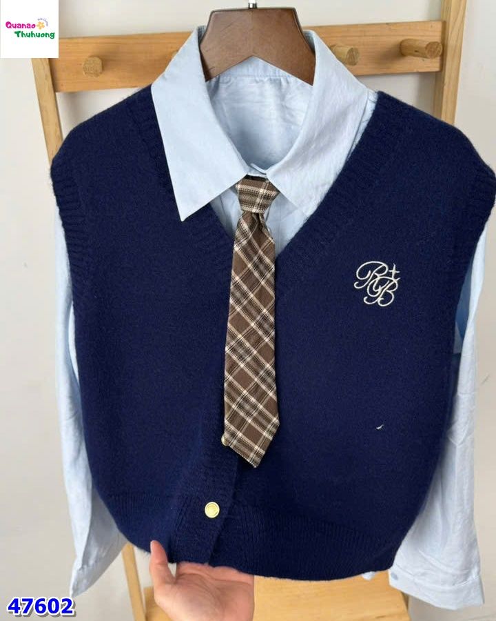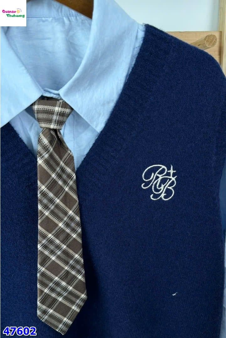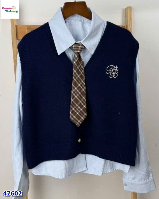 👕 Áo sơ mi trắng dài phối cùng gile xanh RB thời thượng, tạo layer chuẩn phong cách.