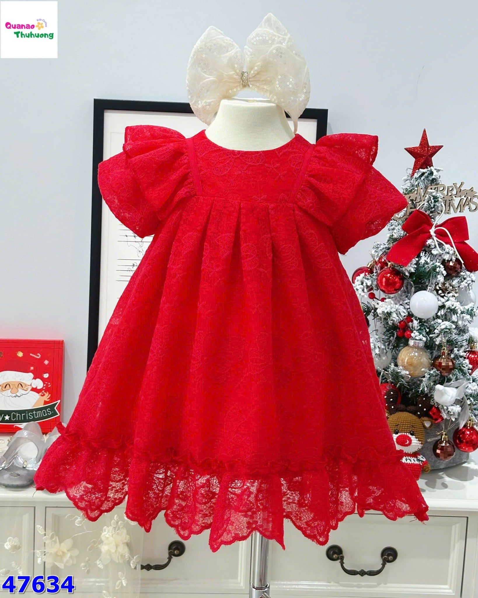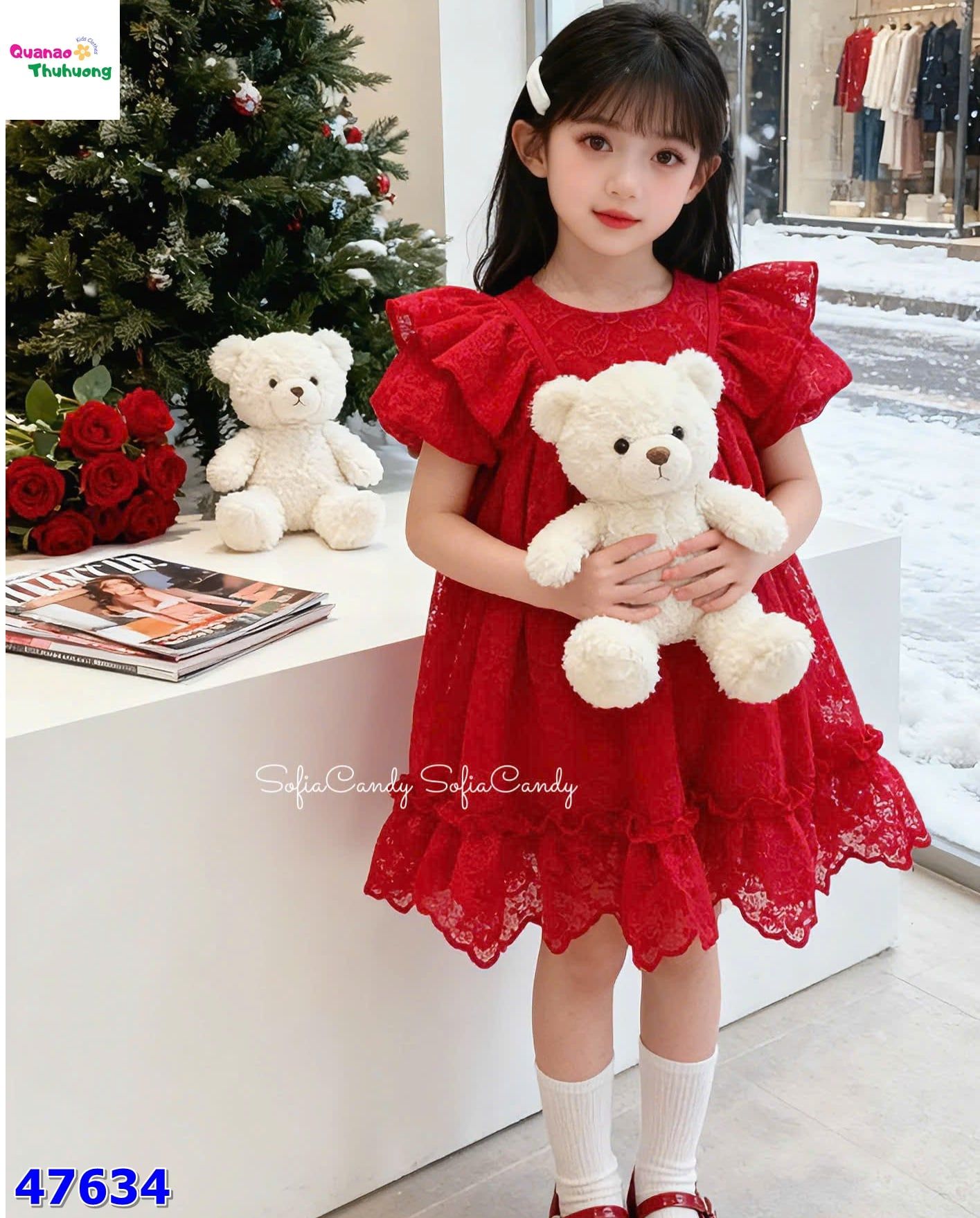 Đầm MiaKid đỏ ren in nơ KHUYẾN MÃI - ƯU ĐÃI