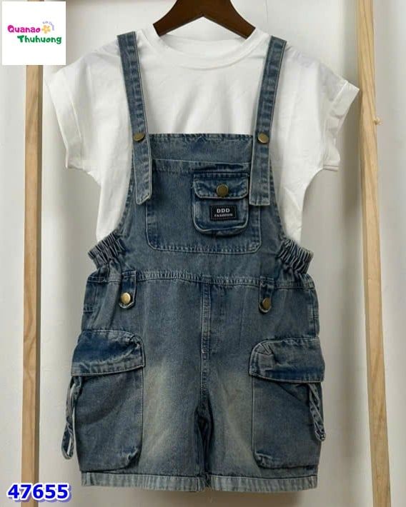 Set yếm jean phối áo trắng siêu xinh cho bé