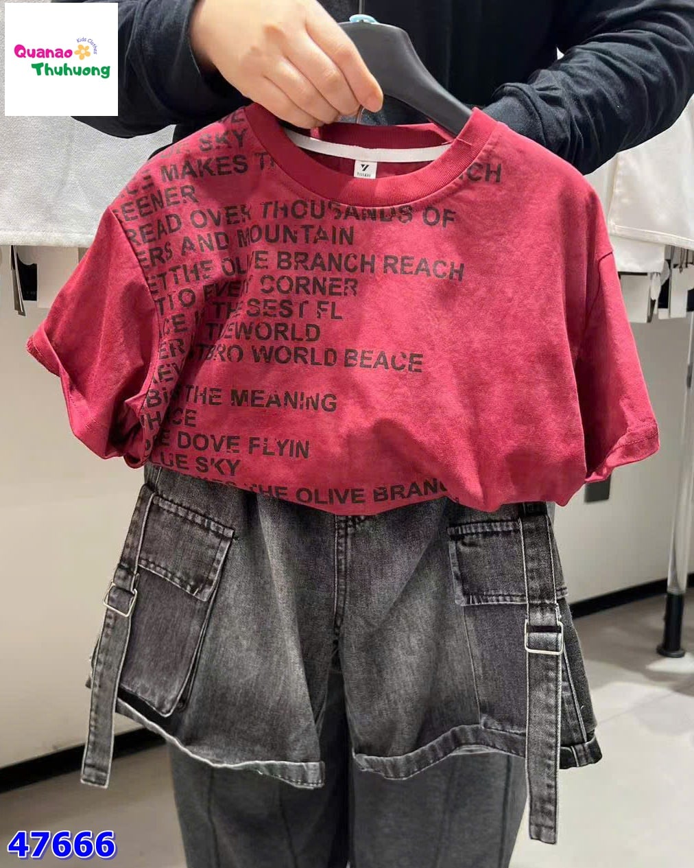 Set thun đỏ nổi bật, chất vải mềm mịn, co giãn tốt cho bé thoải mái vận động