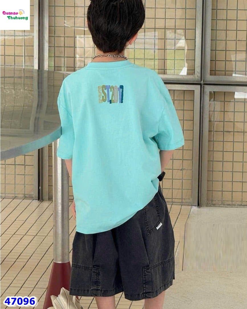 Chất thun cotton mềm mịn, thoáng mát, form chuẩn thoải mái giúp bé tự tin vận động cả ngày.