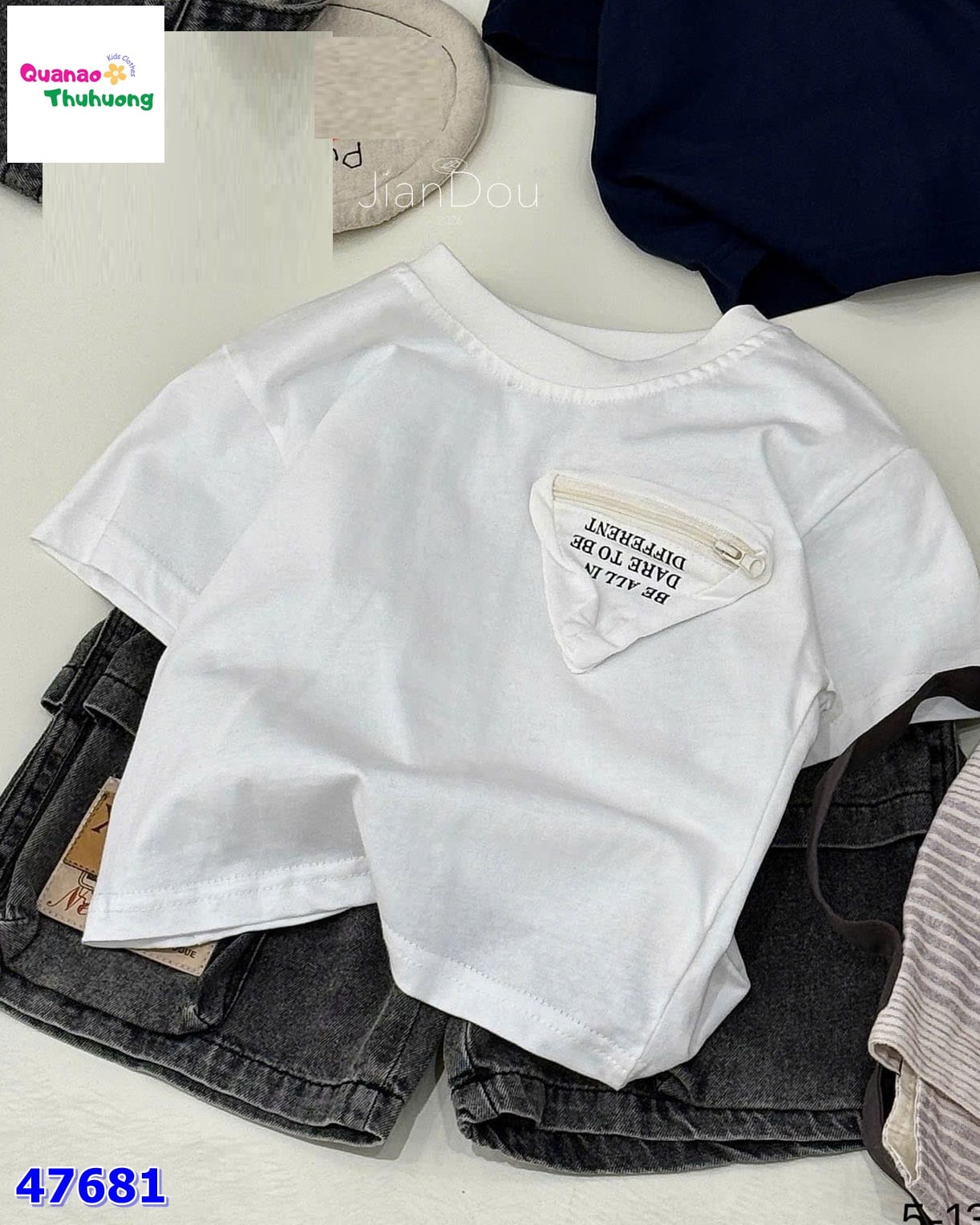Tông trắng dễ phối mọi kiểu quần, bé mặc đi chơi – đi học đều rất đẹp.