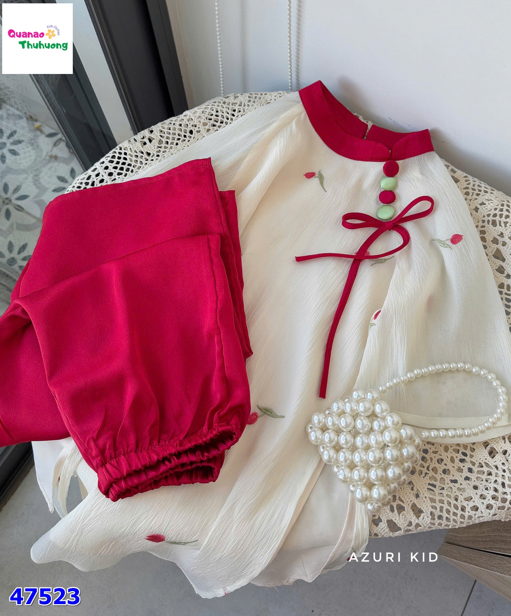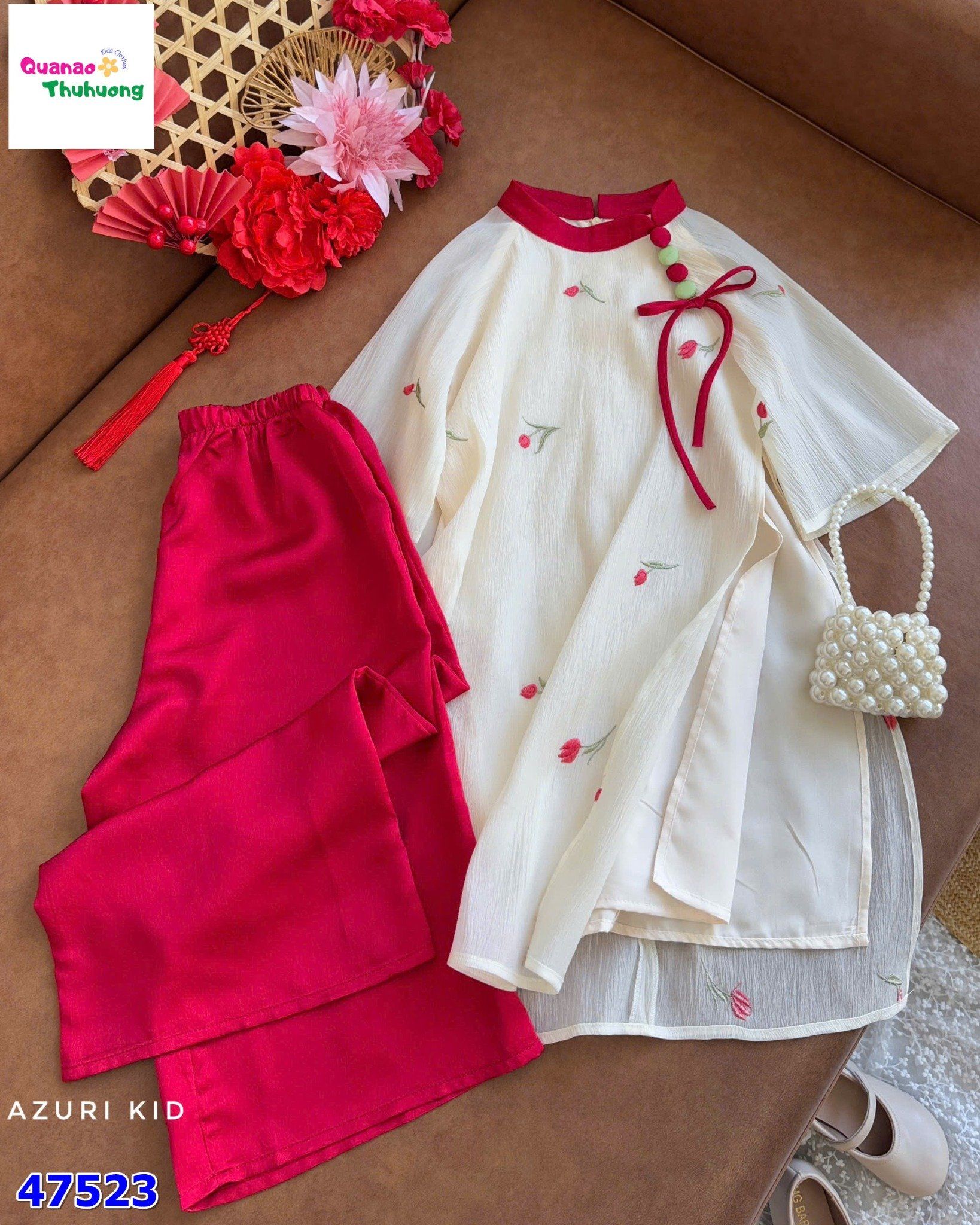 Đi kèm quần đỏ rực rỡ tạo điểm nhấn sang trọng, diện Tết cực xinh và nổi bật.