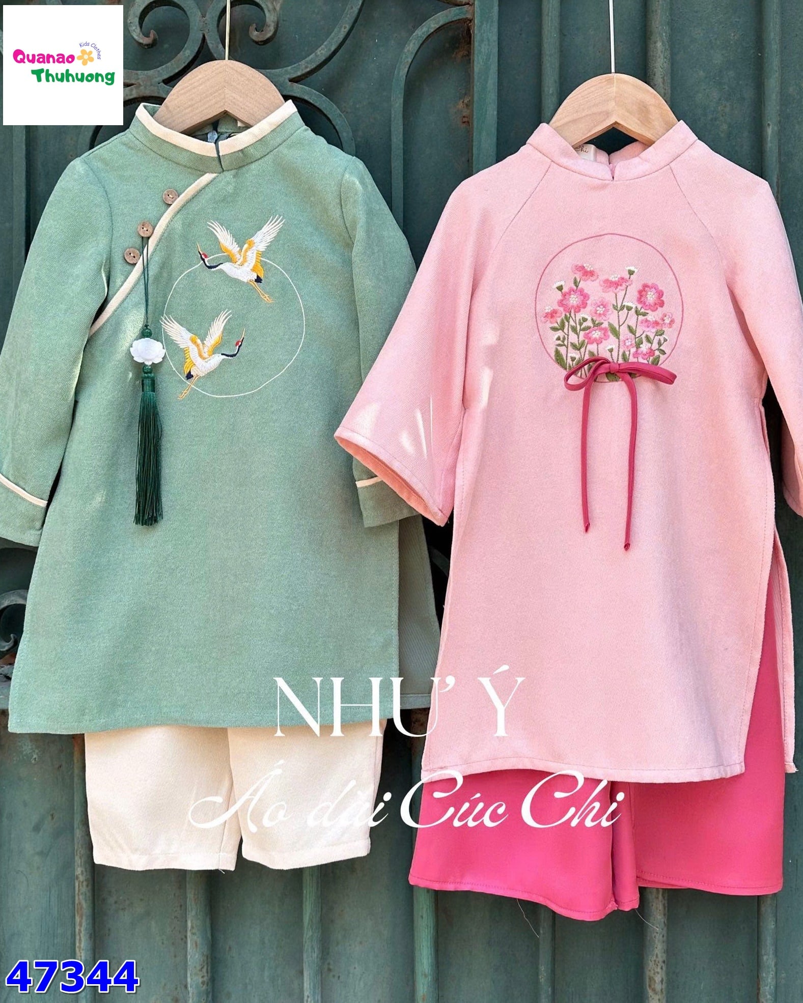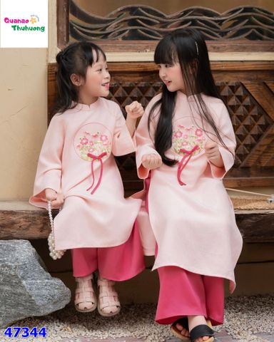 Áo dài hồng thêu hoa Như Ý may mắn xinh yêu