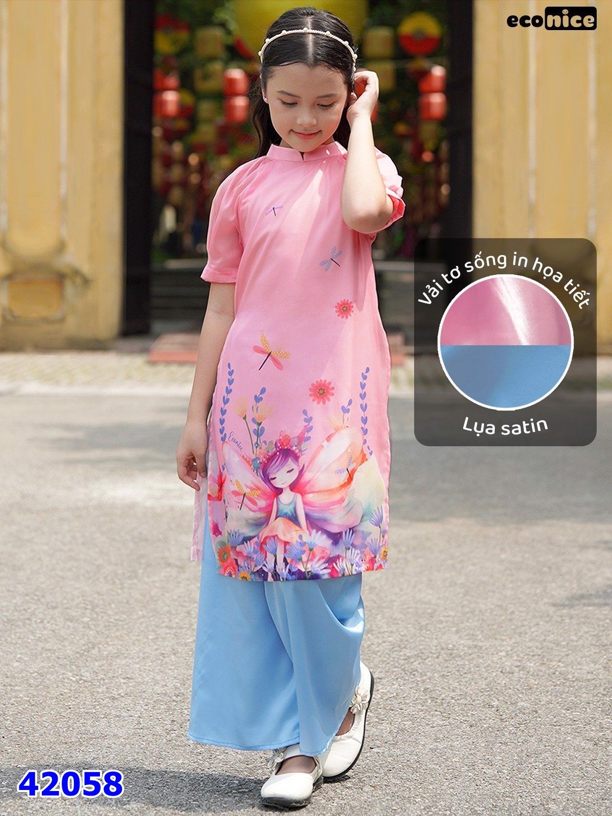Bộ áo dài bé gái với thiết kế cách tân dễ dương, tươi tắn.