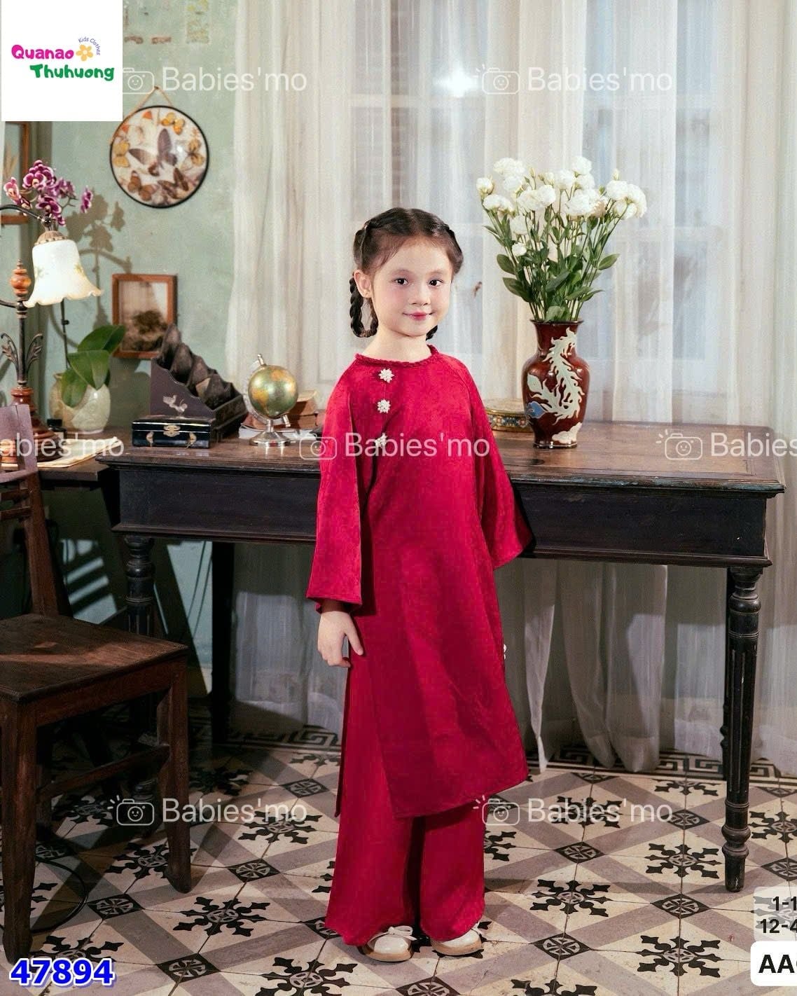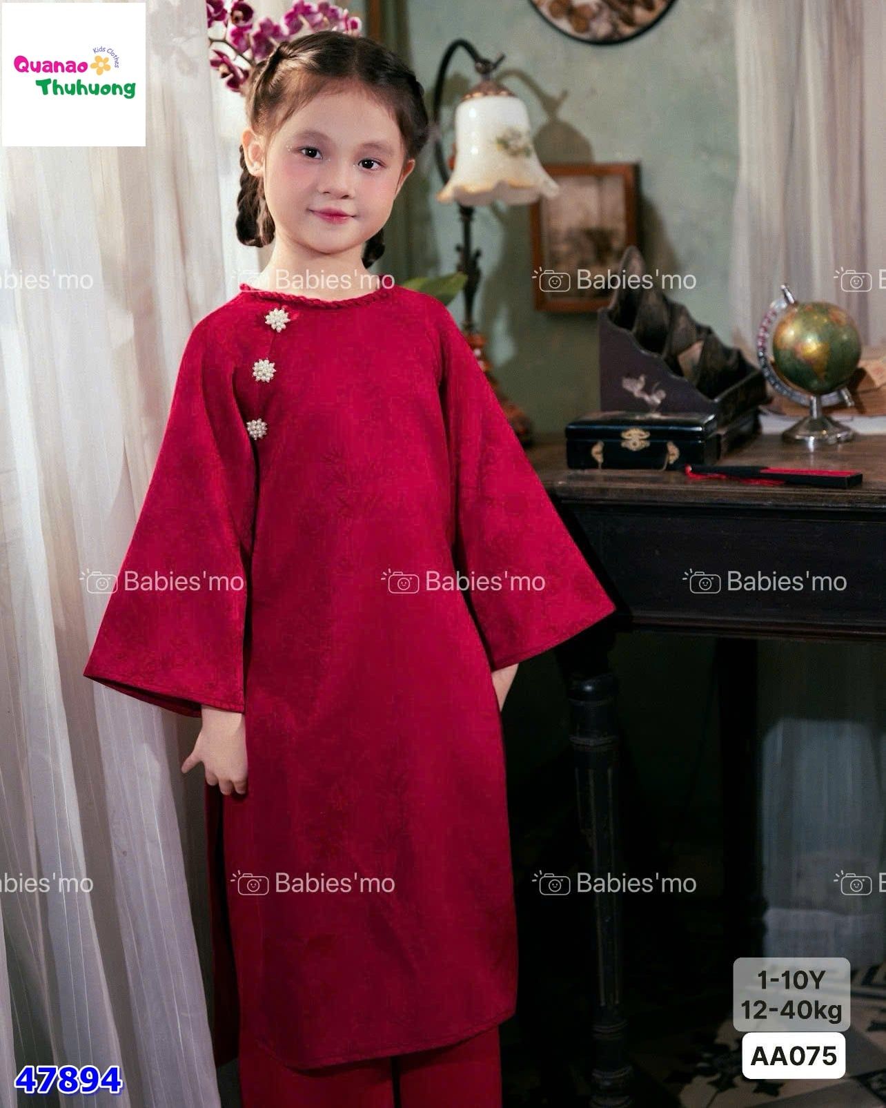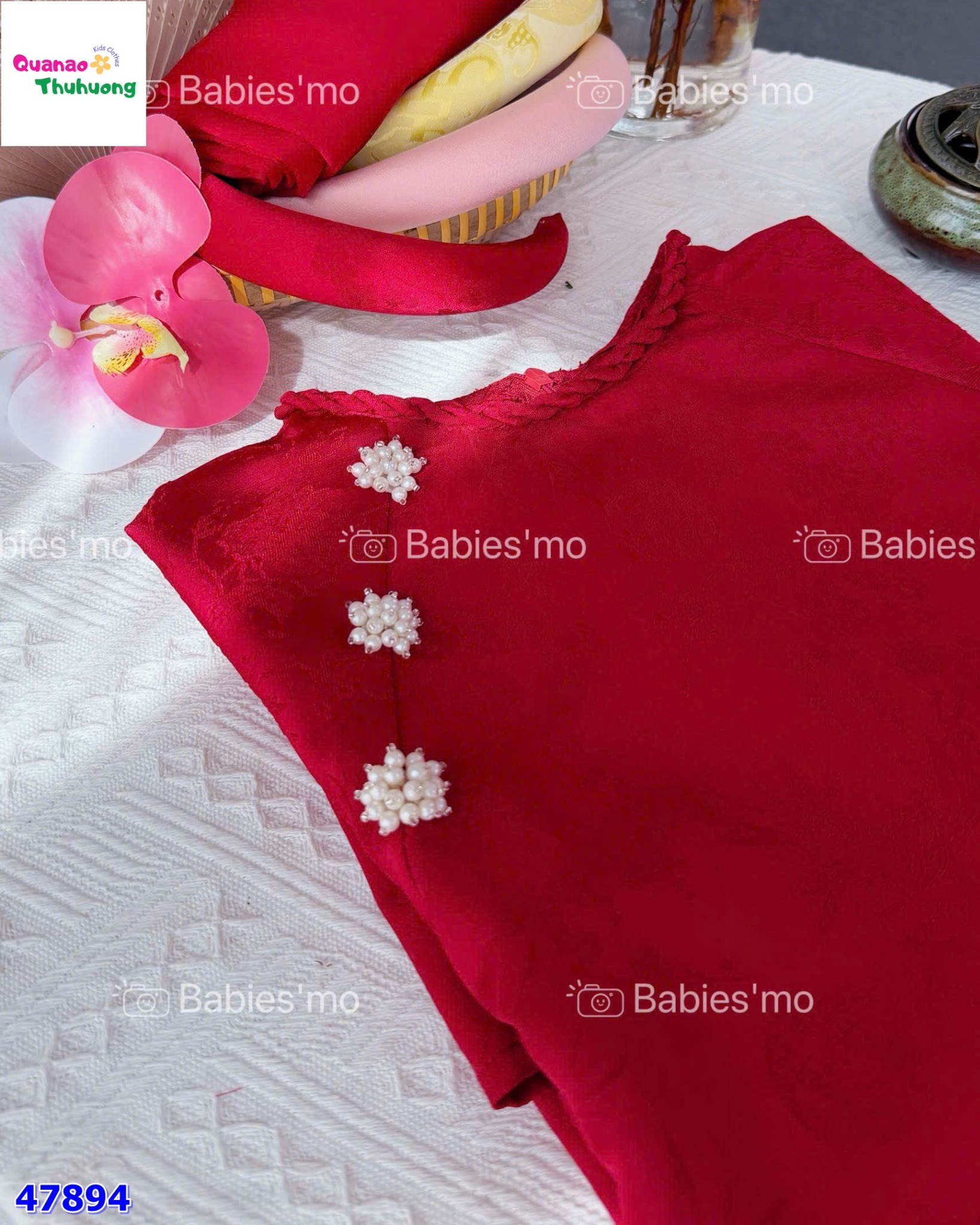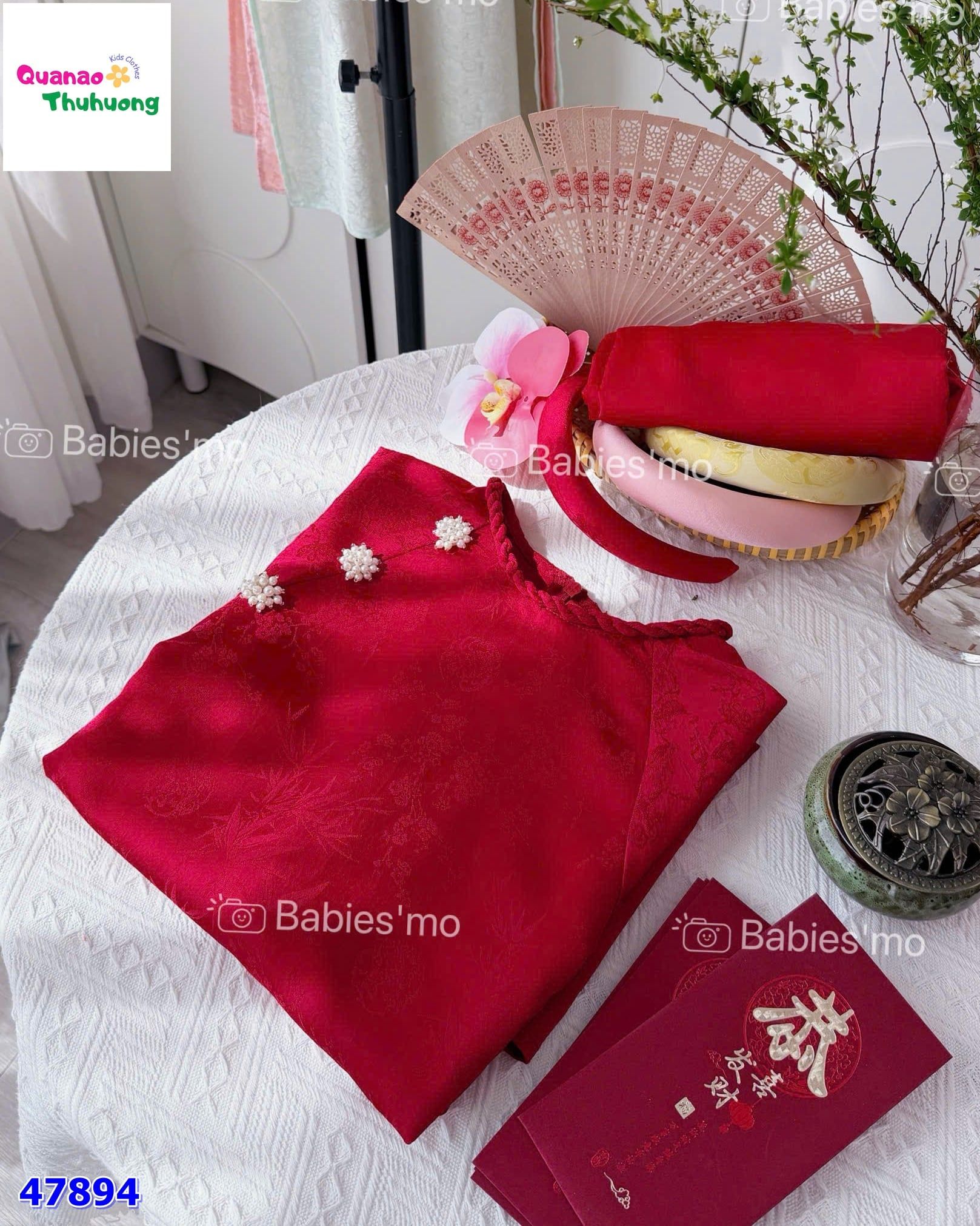 Áo dài Tết Babies Mo đỏ hoa ngọc 🌸