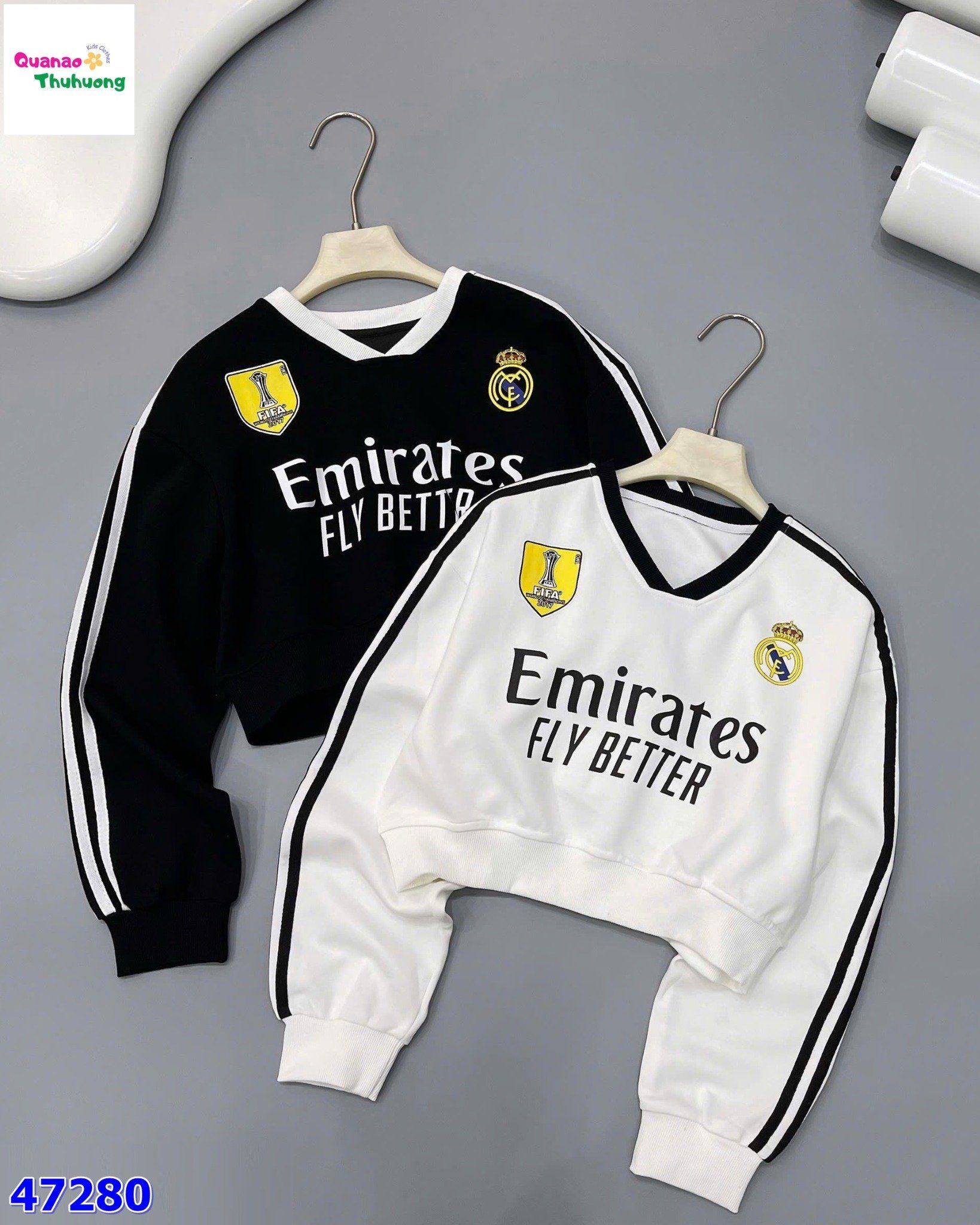 - Phong cách sporty cá tính, phối sọc tay nổi bật, mặt trước in logo “Emirates Fly Better”, mặt sau in số 9 cực ngầu.