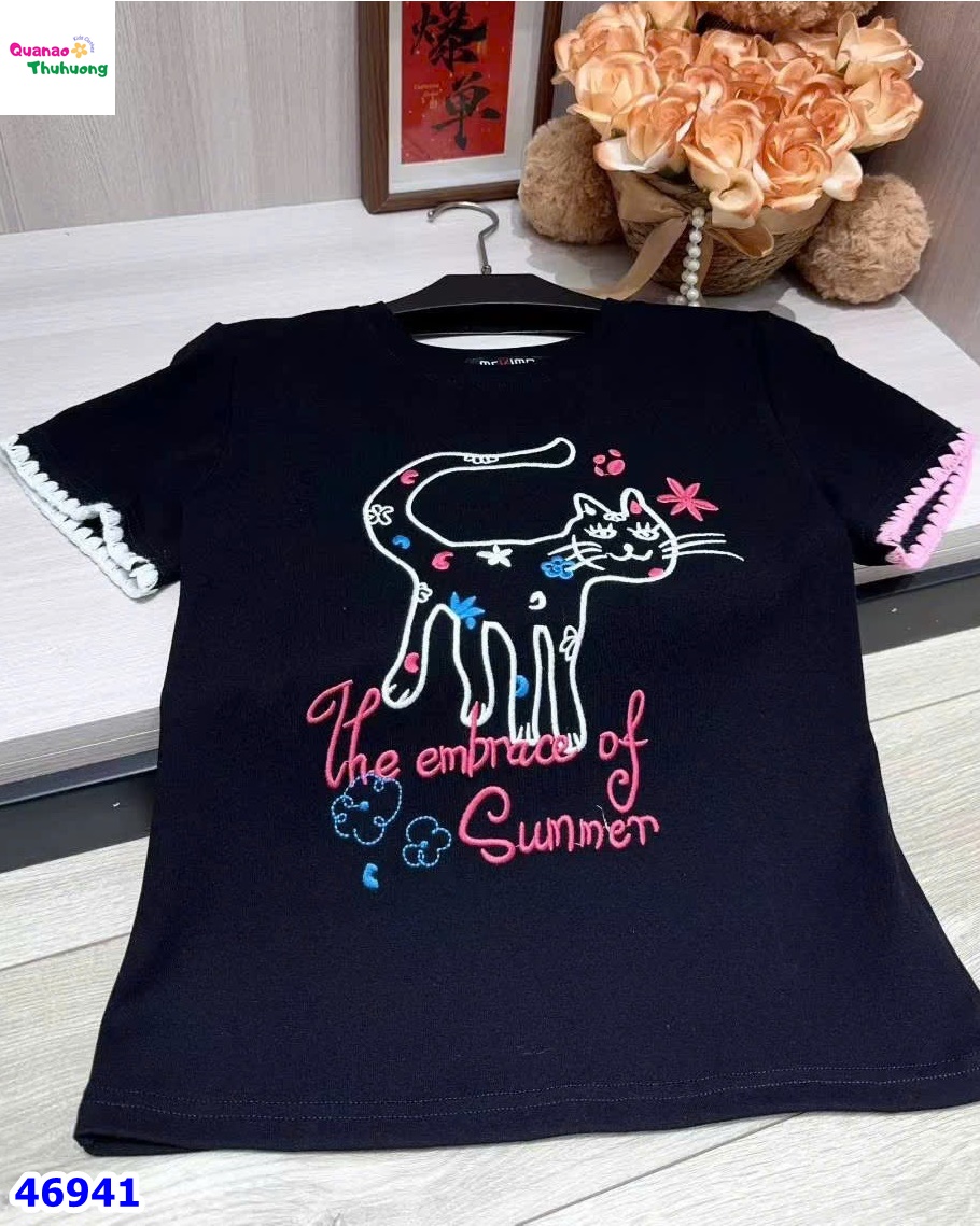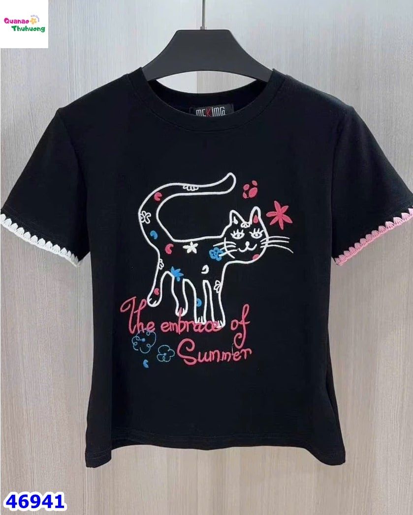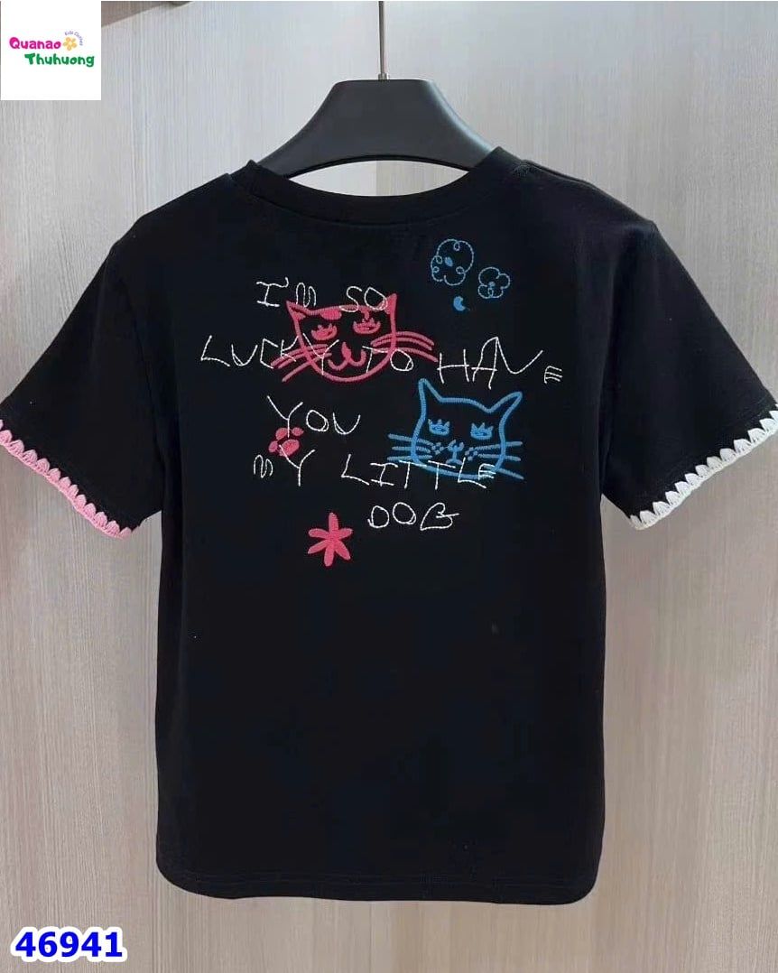 Chiếc áo đen được in hình chú mèo dễ thương, đáng yêu như chính nụ cười của bé yêu nhà mình 😻