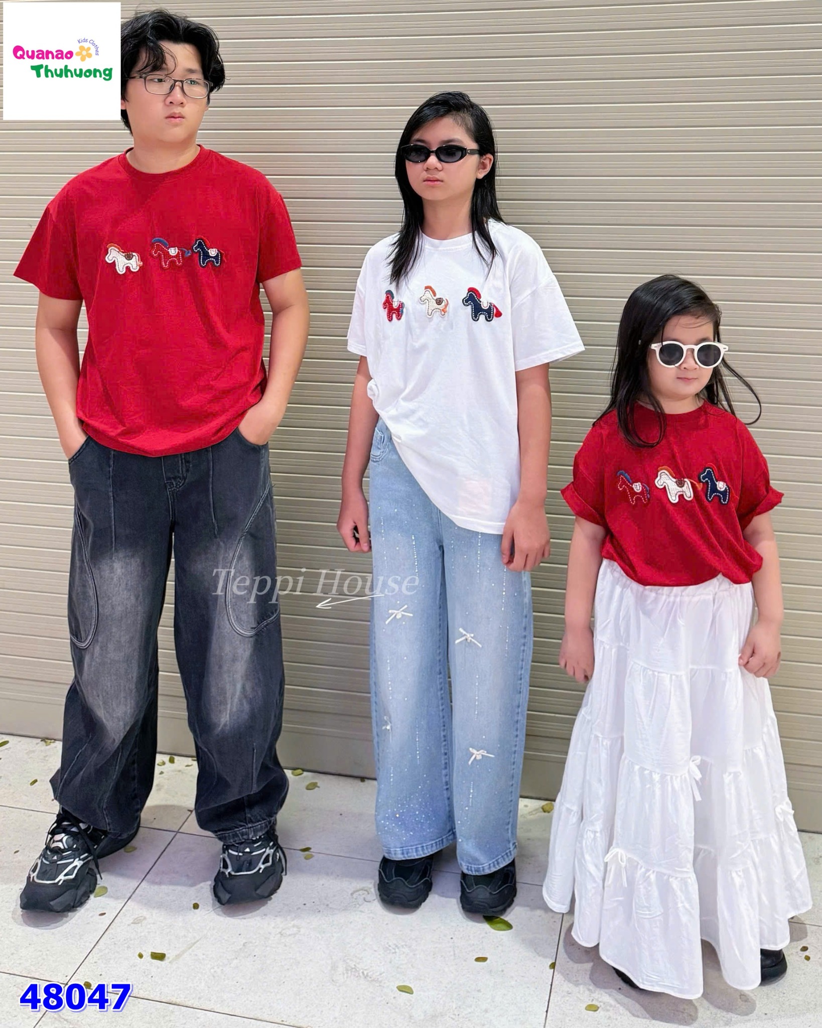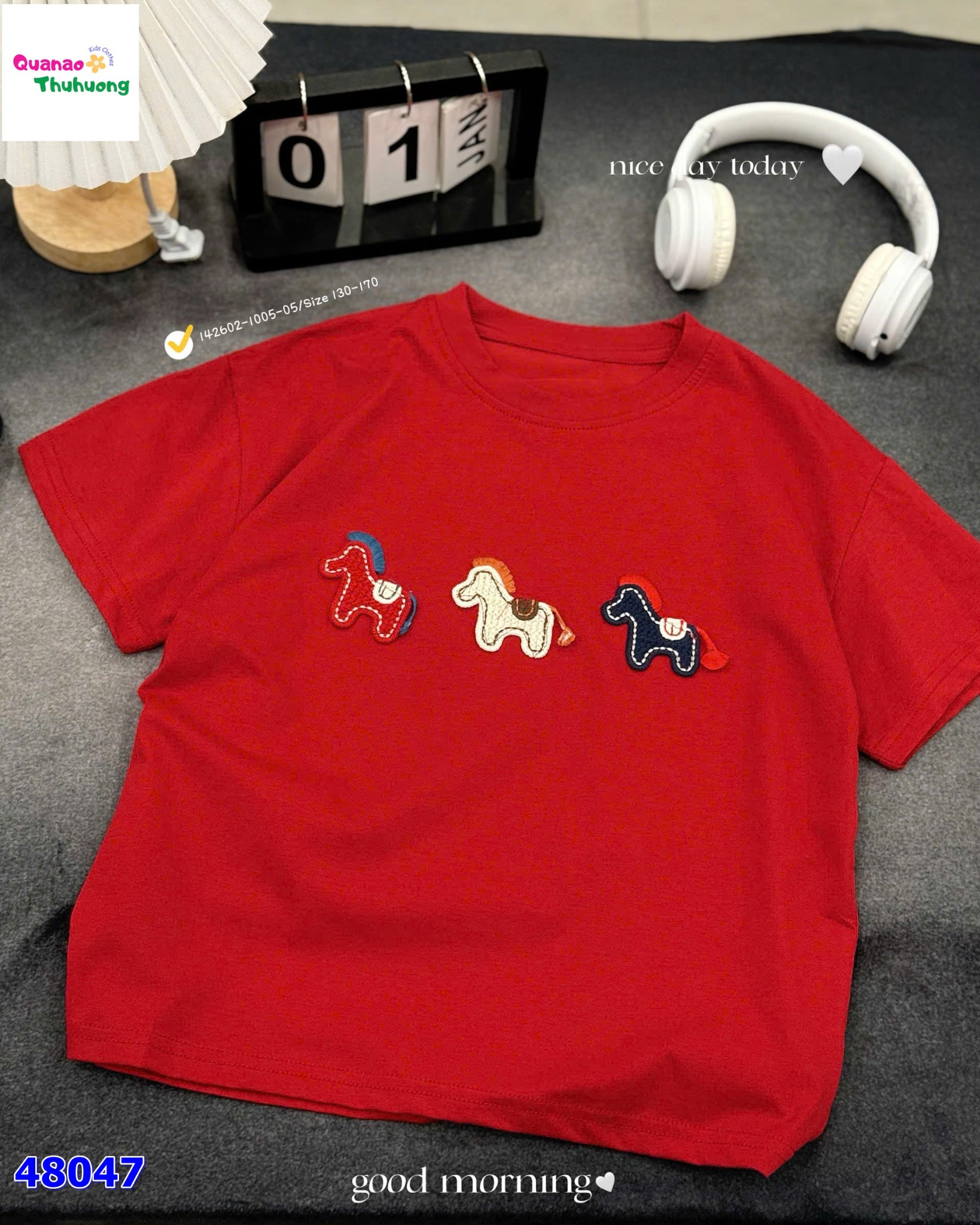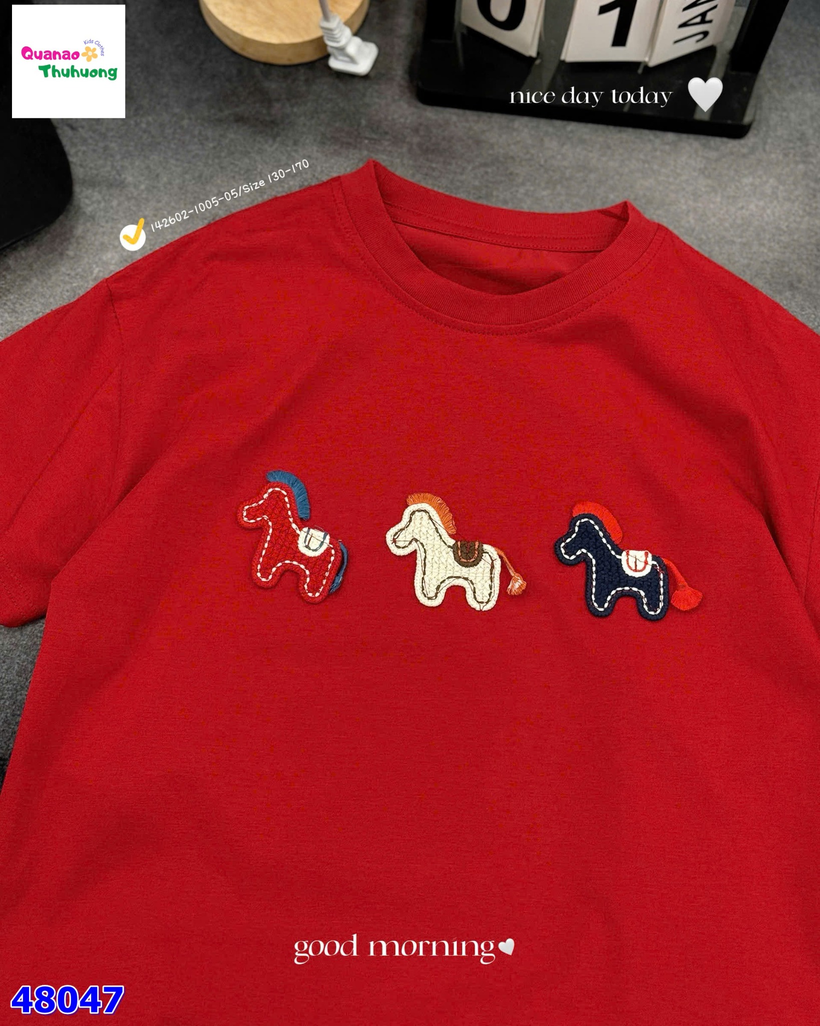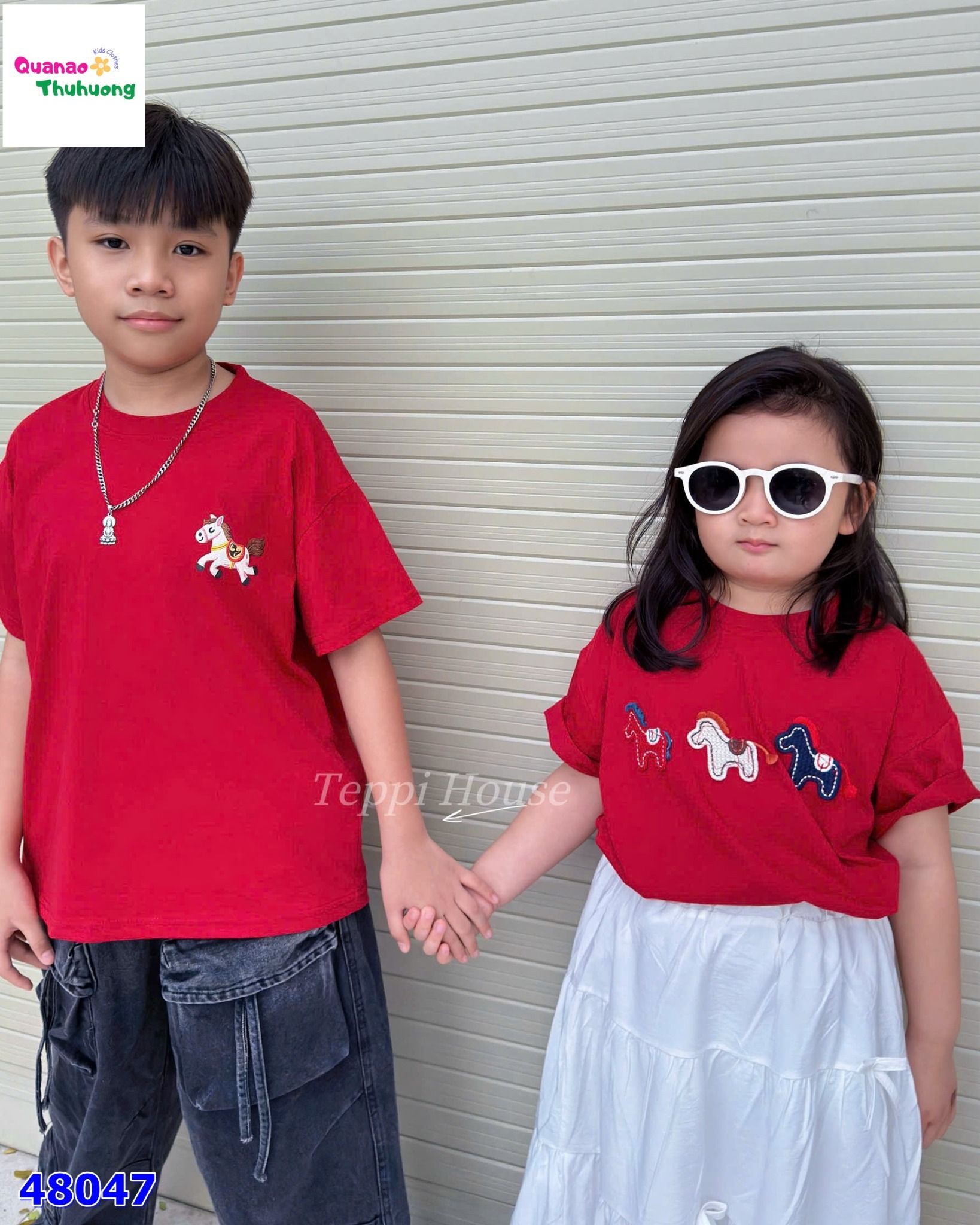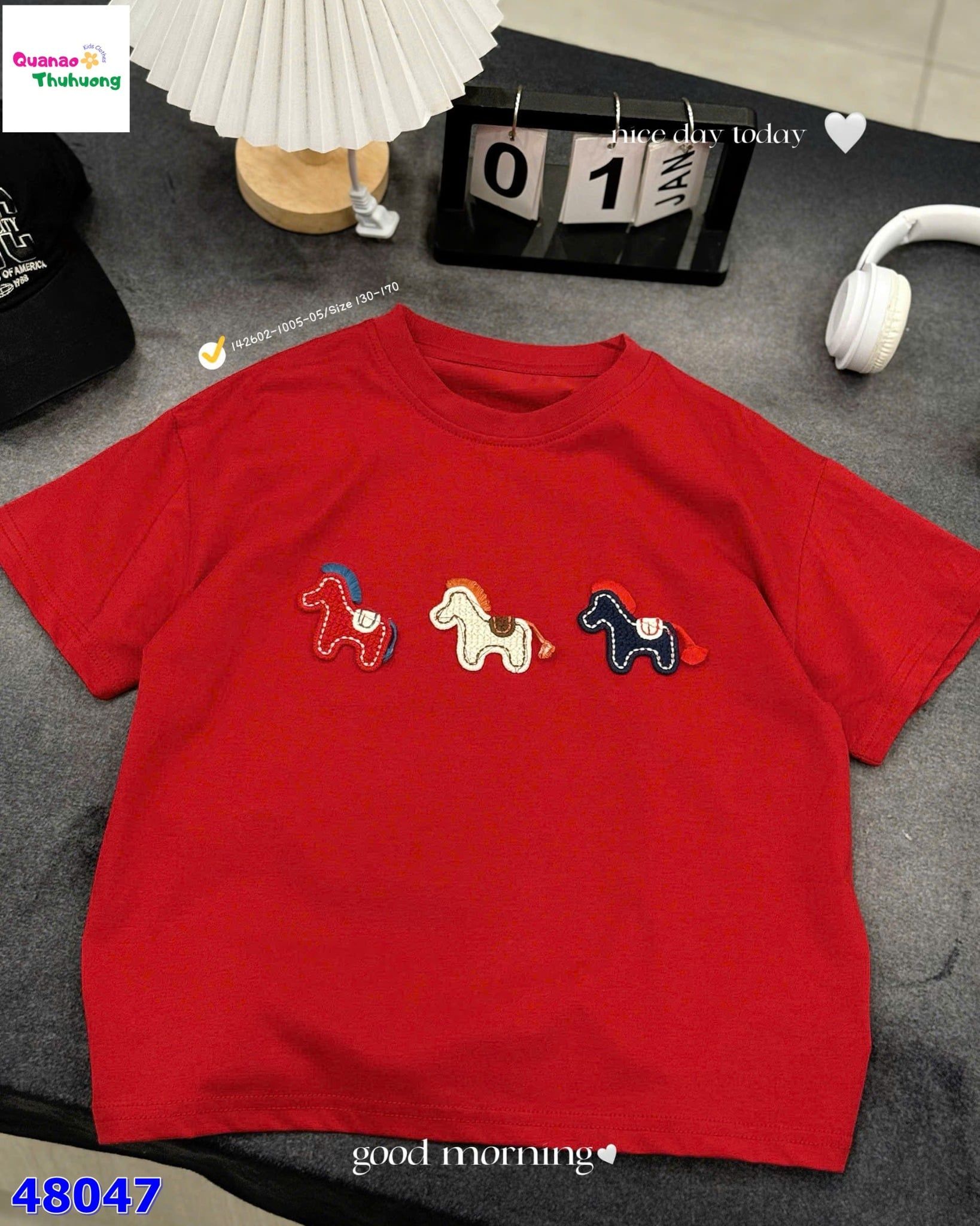 Áo đỏ thêu 3 con ngựa nổi bật với gam đỏ tươi rực rỡ, giúp outfit thêm phần bắt mắt và năng động ✨