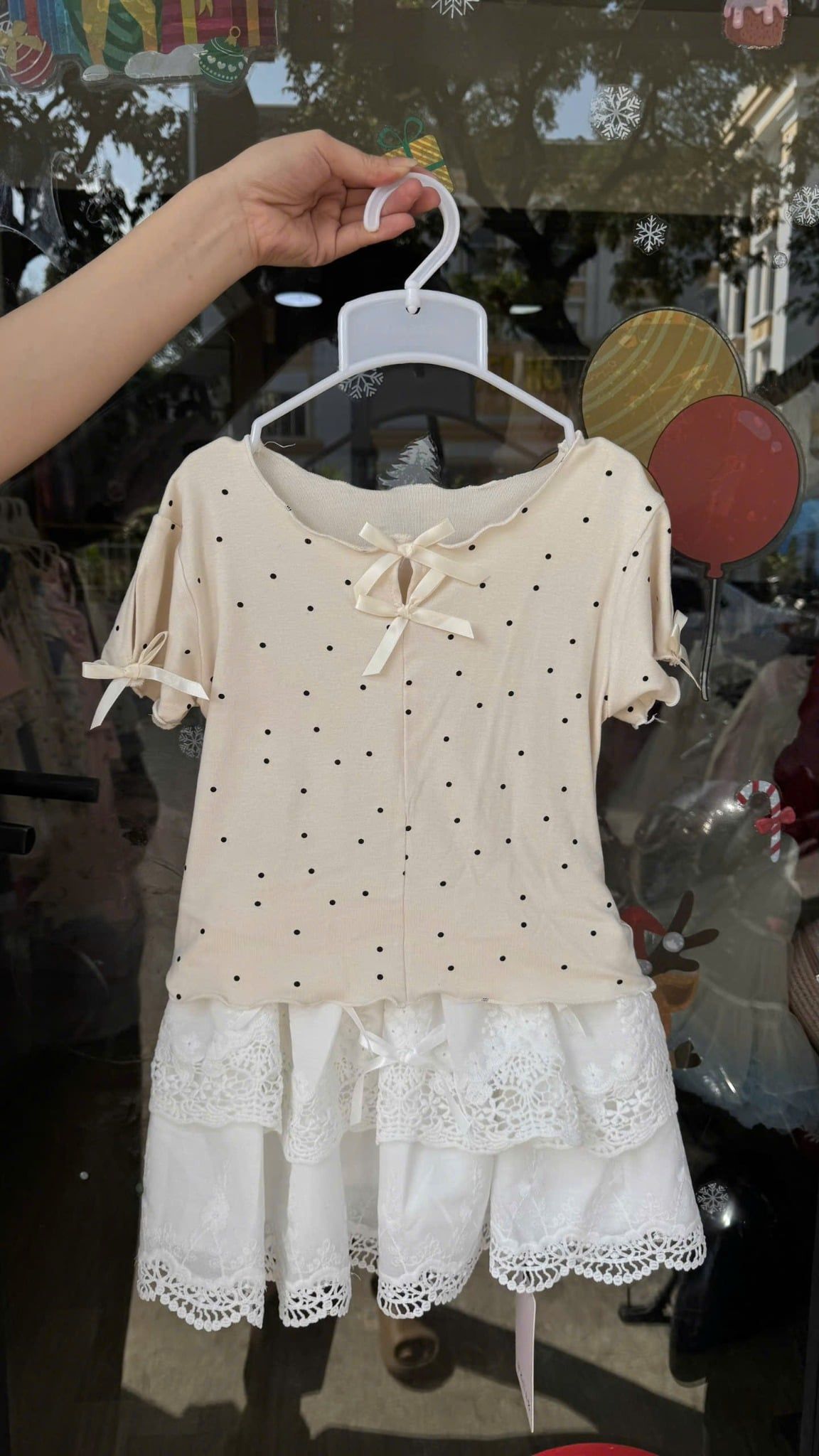 ✨ Hoạ tiết chấm bi dễ thương – tông kem cực sang