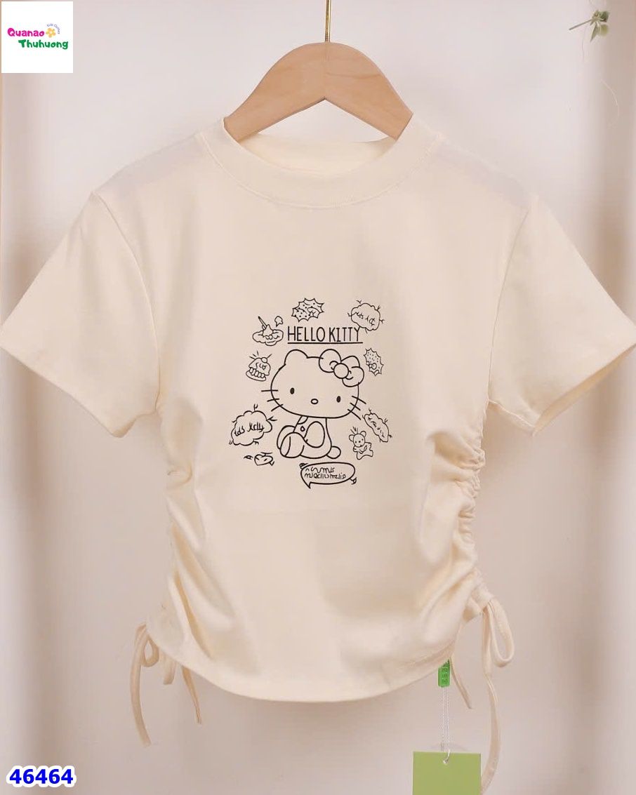 Áo thun màu kem Hello Kitty với thiết kế ngọt ngào, nhẹ nhàng, cực kỳ dễ phối đồ