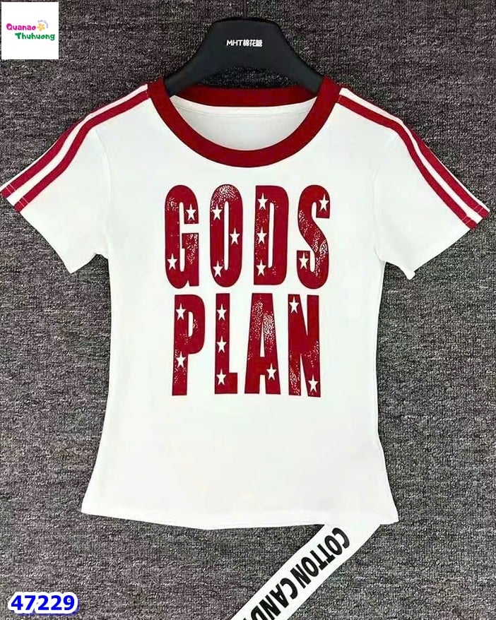 Áo thun kem viền đỏ “GODS PLAN” cho bé gái
