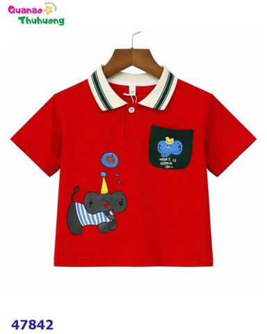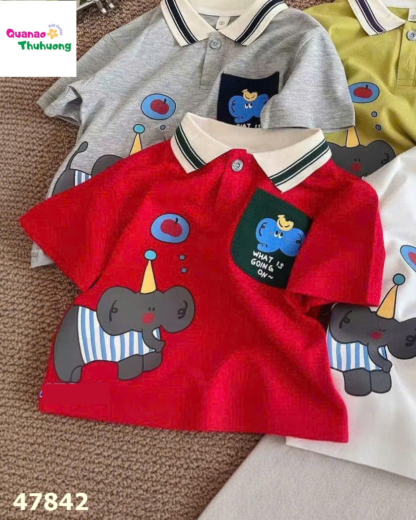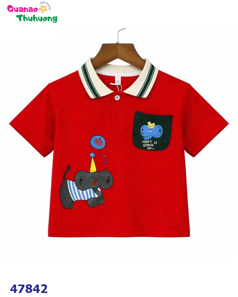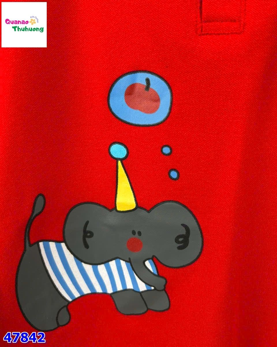Gam đỏ nổi bật, thiết kế polo năng động với họa tiết con voi đáng yêu.