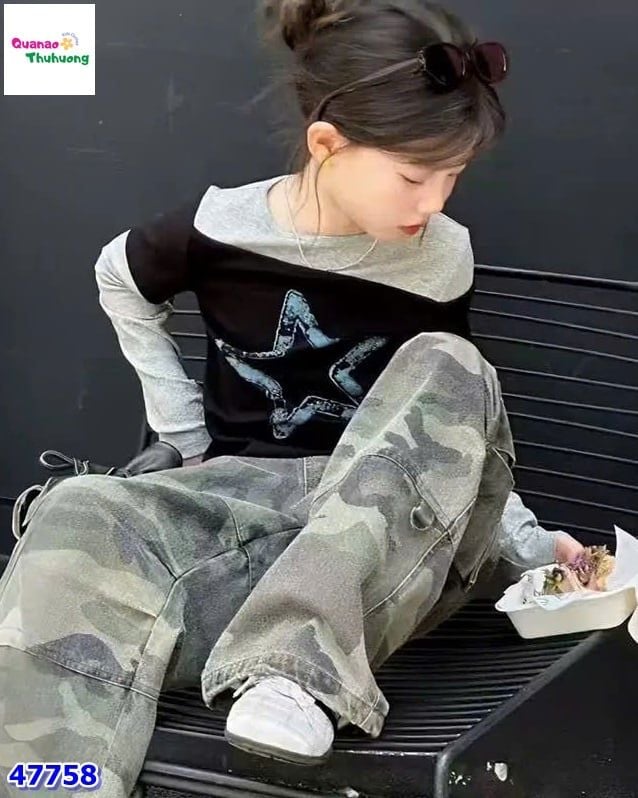 Gam màu xám đen cá tính, họa tiết sao xanh nổi bật, dễ phối đồ 🖤