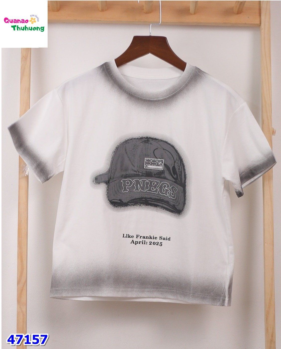 - Áo thun chữ trắng cho bé trai – đơn giản mà vẫn cực kỳ phong cách.