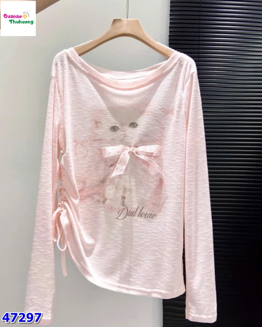 Áo thun dài tay hồng in mèo🖤 đơn giản mà cực kỳ thời trang.
