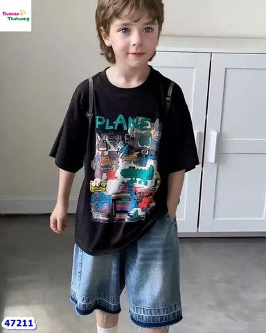 Thiết kế in hình máy bay nổi bật trên nền đen cá tính, mang lại vẻ năng động và hiện đại cho bé trai. 🖤