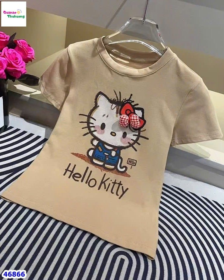 ✨ Áo thun kem nâu Hello Kitty – MÓN QUÀ DỄ THƯƠNG CHO BÉ GÁI NHÀ MÌNH 💕