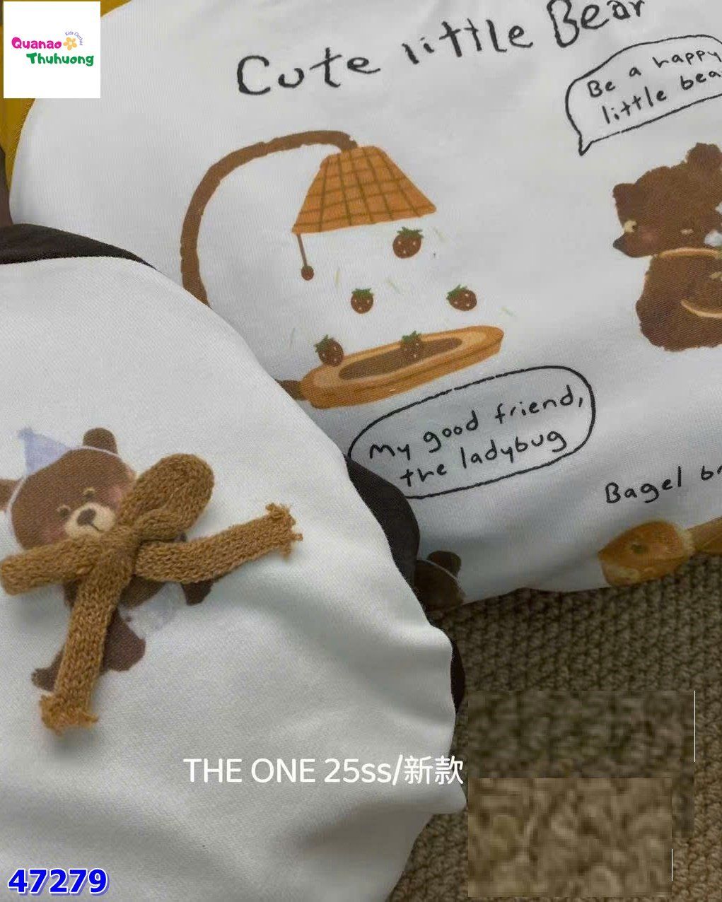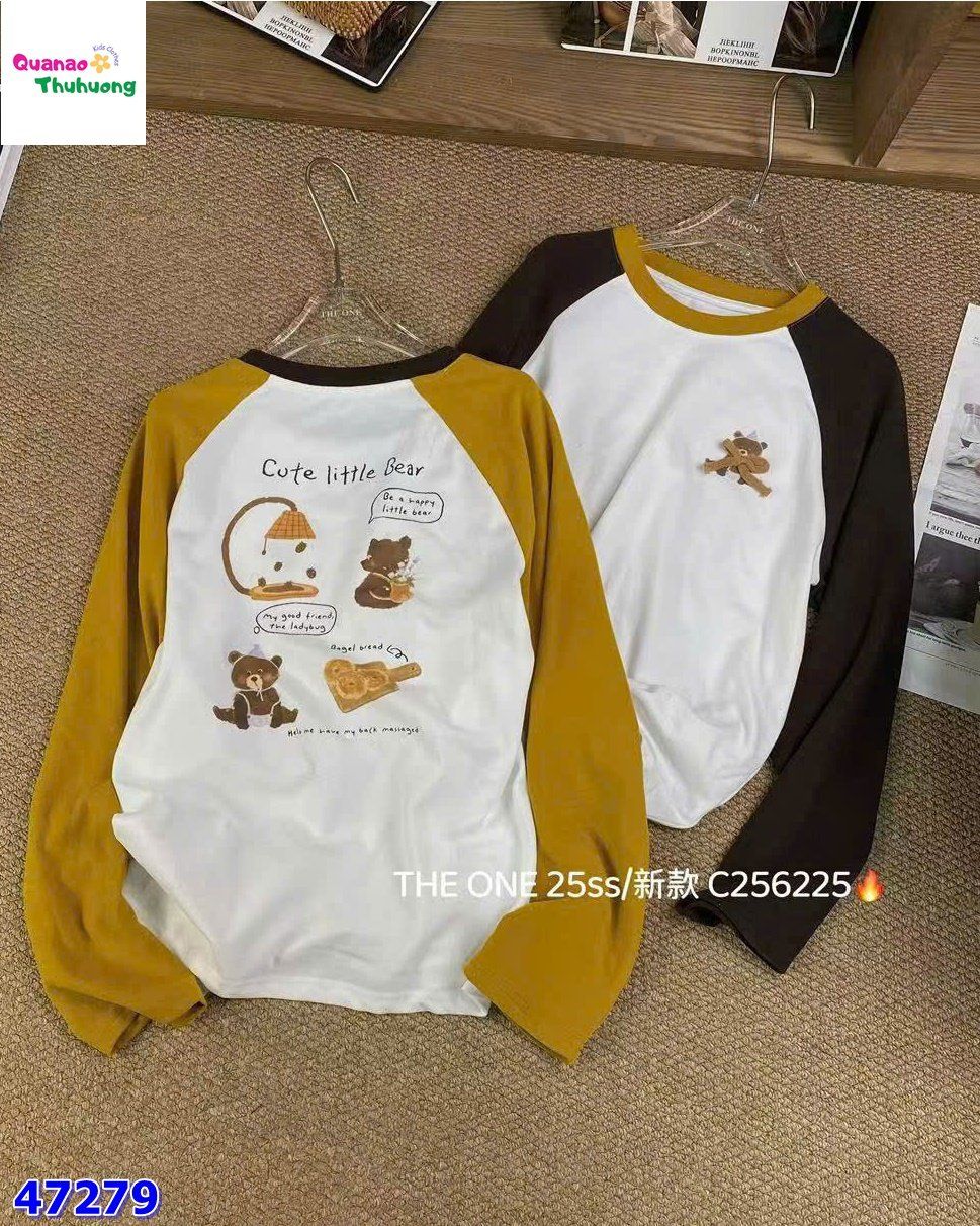 Áo thun kem tay đen thêu gấu cho bé 🎀