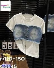 Áo thun trắng phối yếm jean BB dáng croptop cá tính