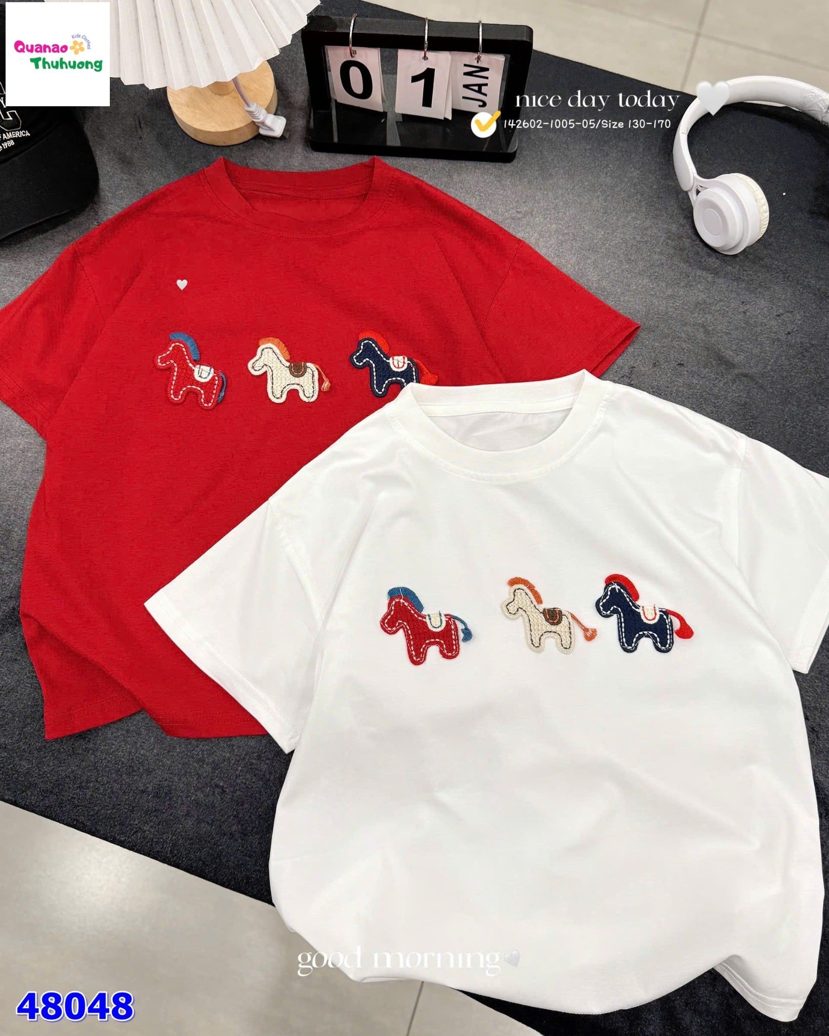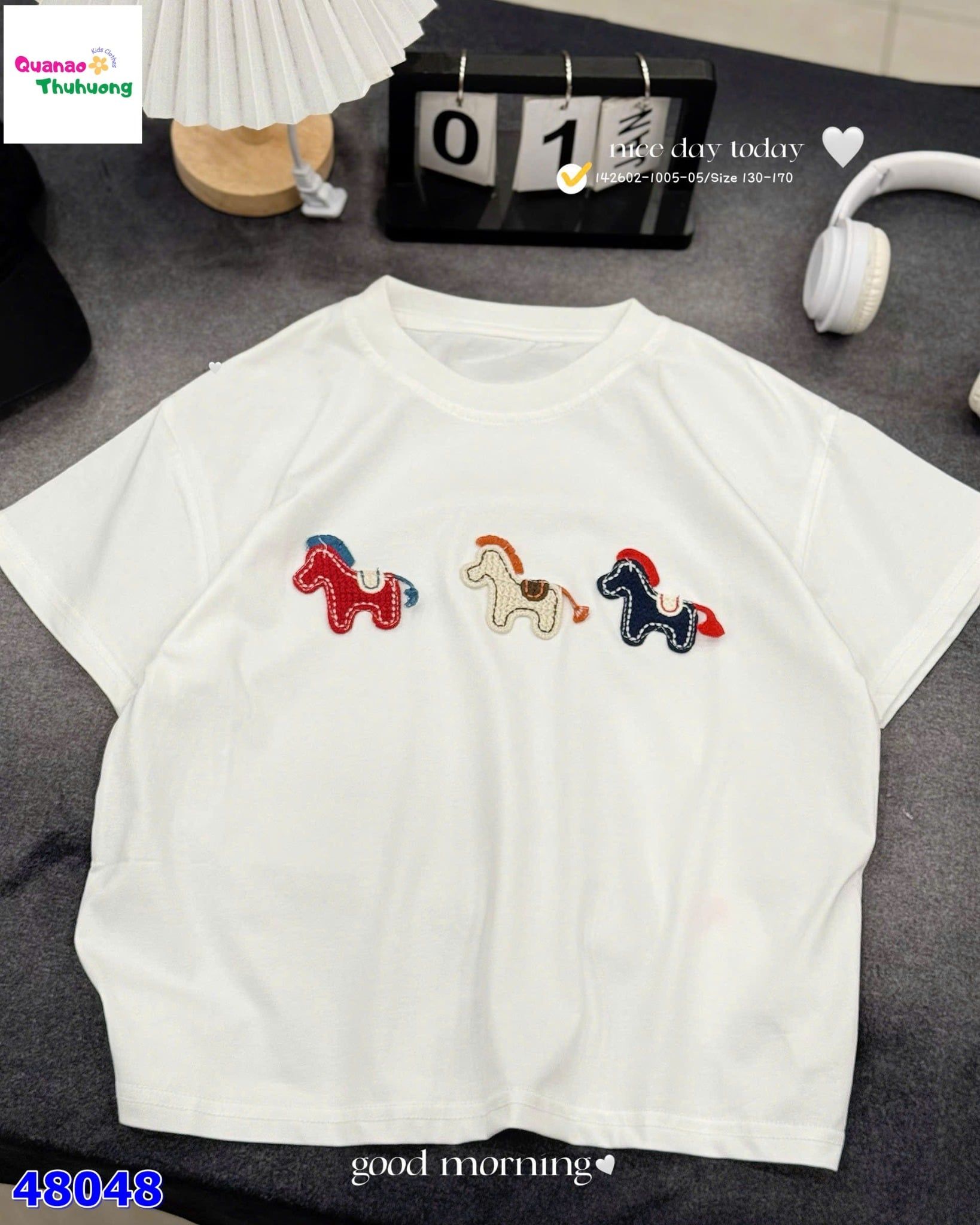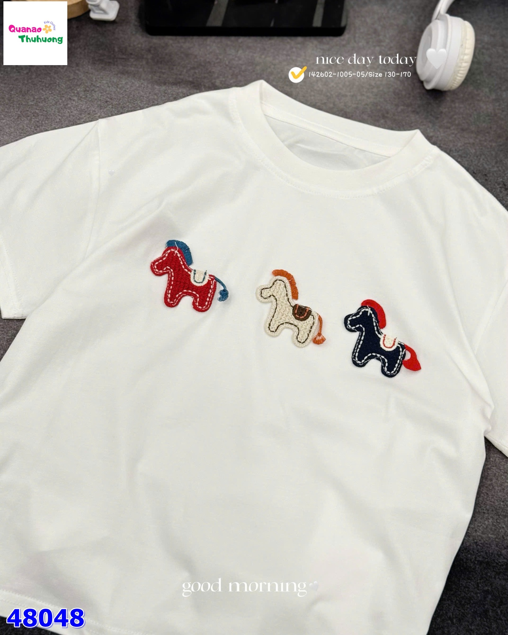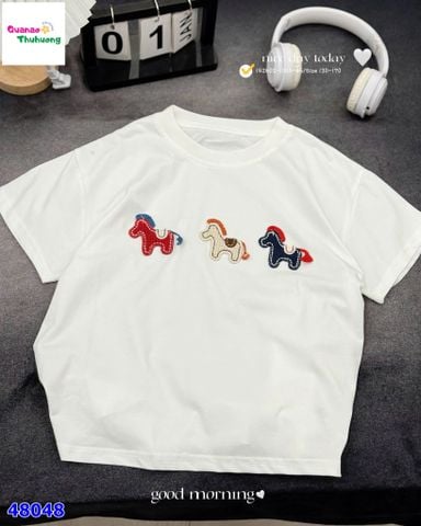 Áo trắng thêu 3 con ngựa với tone trắng tinh khôi, dễ mặc và dễ phối đồ 🤍