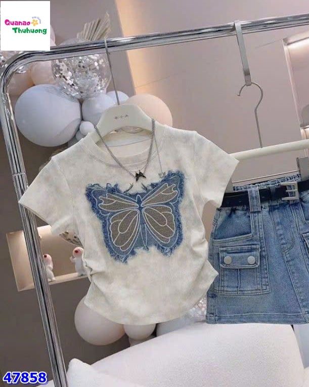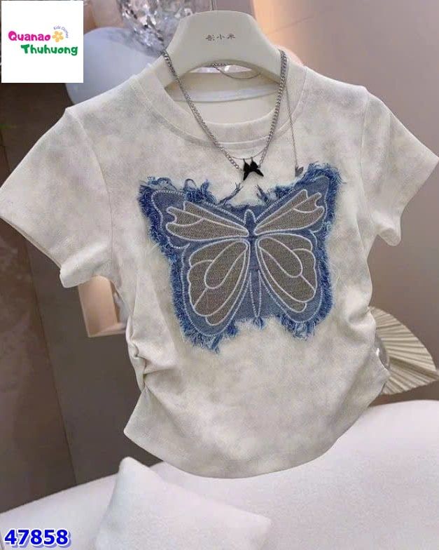 Áo thun xám loang nổi bật với họa tiết bướm xinh xắn