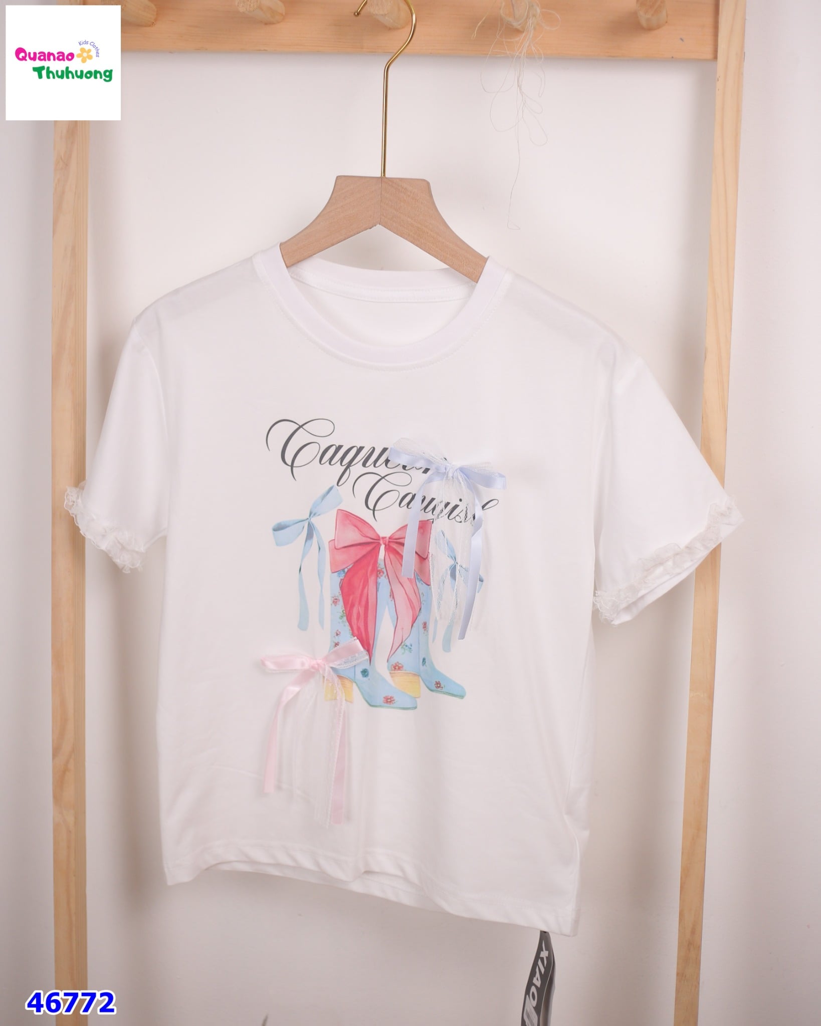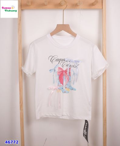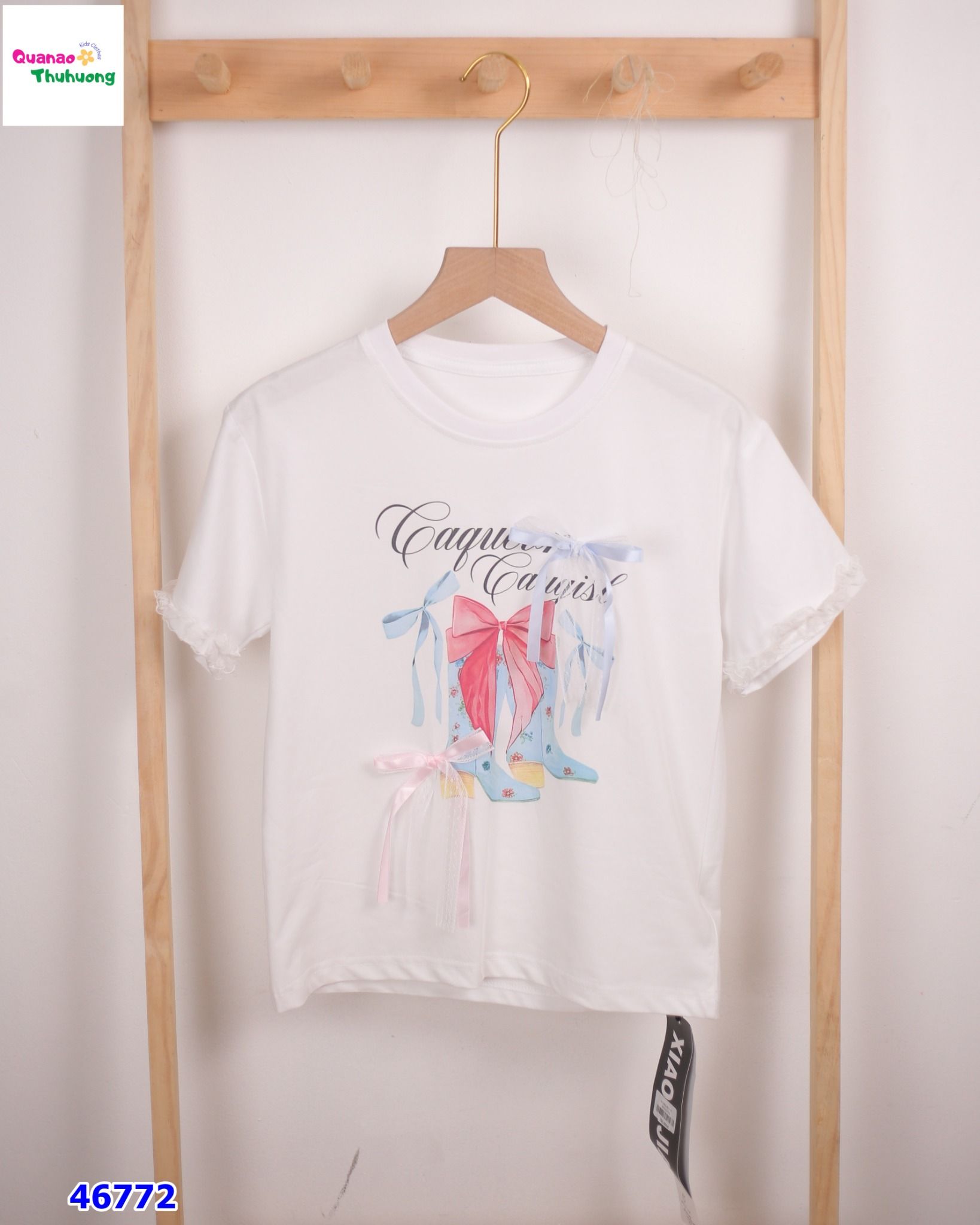 🎀 ÁO THUN TRẮNG ĐÍNH NƠ – ĐƠN GIẢN MÀ CỰC XINH CHO BÉ GÁI 💫