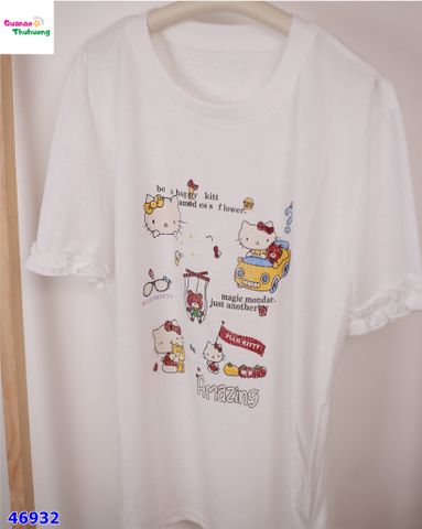 ÁO TRẮNG KITTY TAY BÈO DỄ THƯƠNG CHO BÉ GÁI