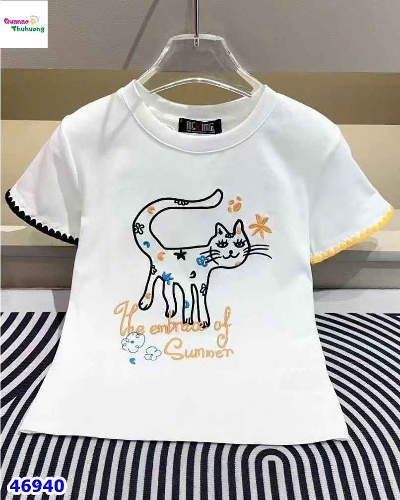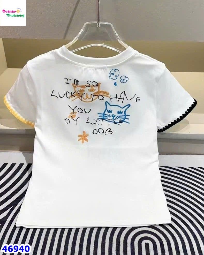 🐱 Áo trắng mèo siêu xinh cho bé gái – Nhìn là "mêo" ngay! 🐾