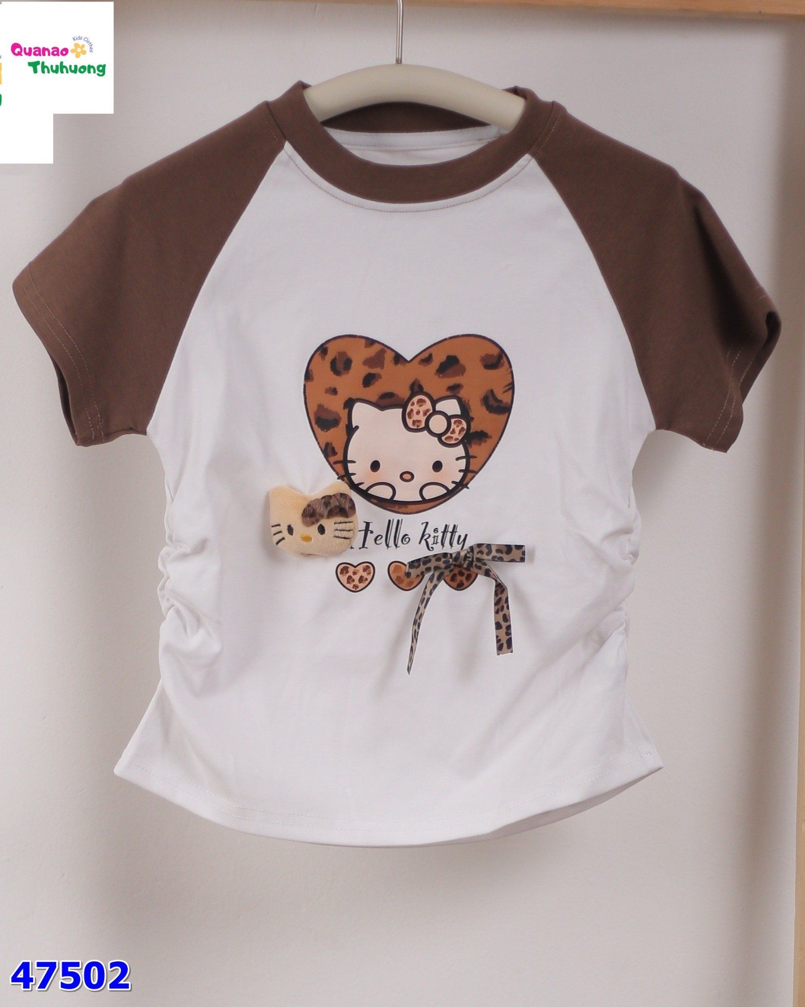Áo trắng tay nâu Hello Kitty siêu xinh cho bé gái