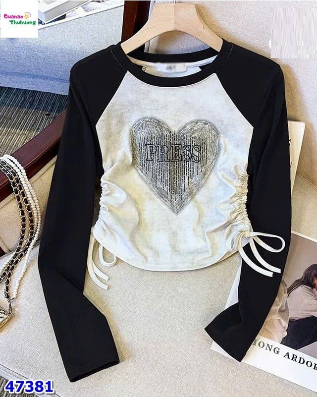 ❤️ Áo xám trái tim tay đen – đơn giản mà nổi bật cho bé gái 💕