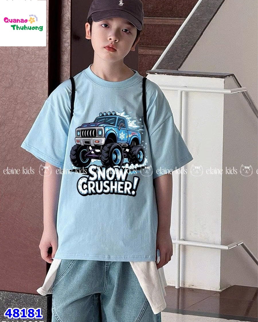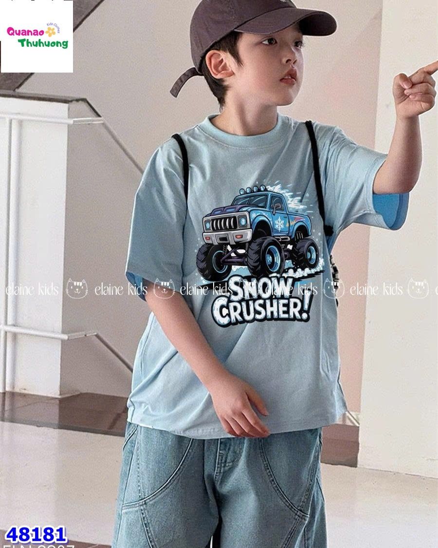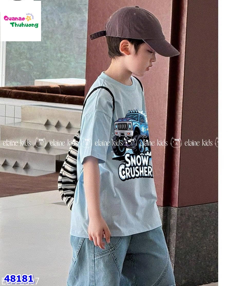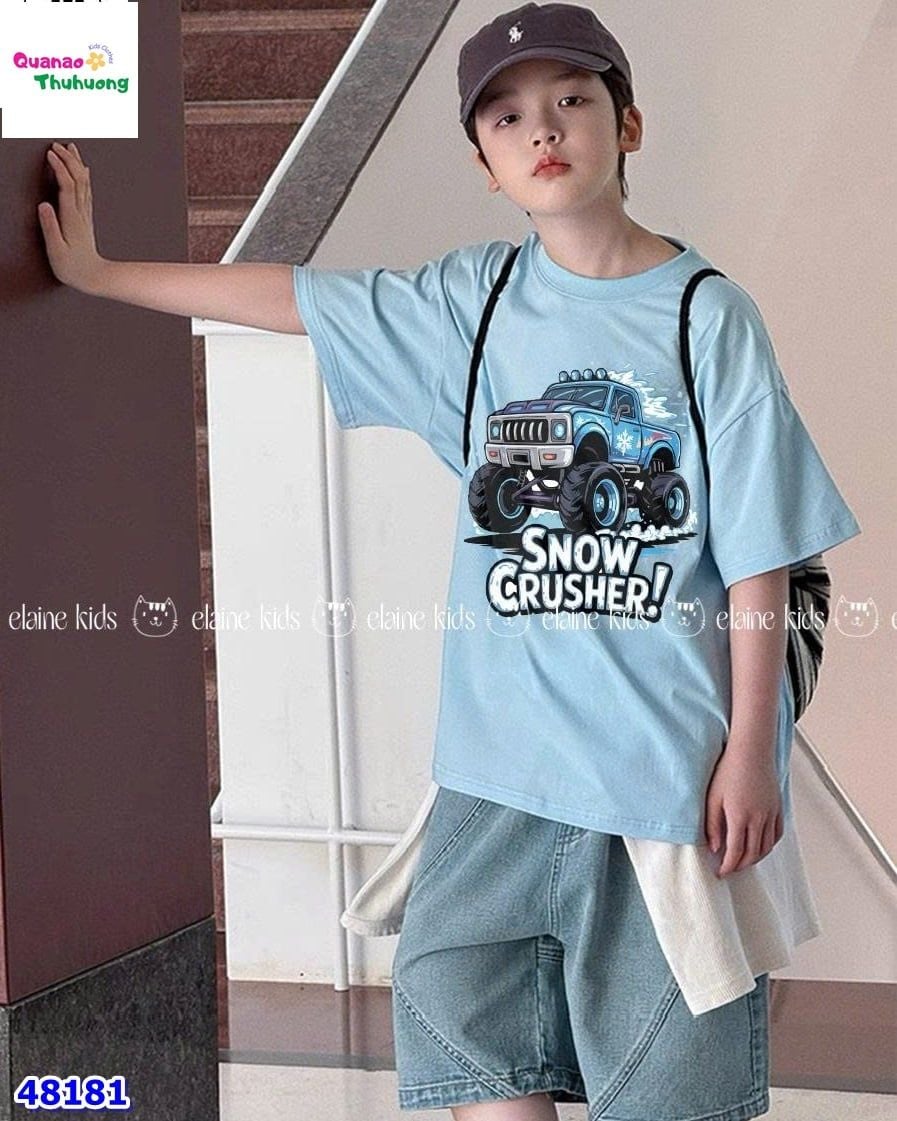 Áo thun xanh dương in hình ô tô năng động, bé trai mê tít 🚙💨