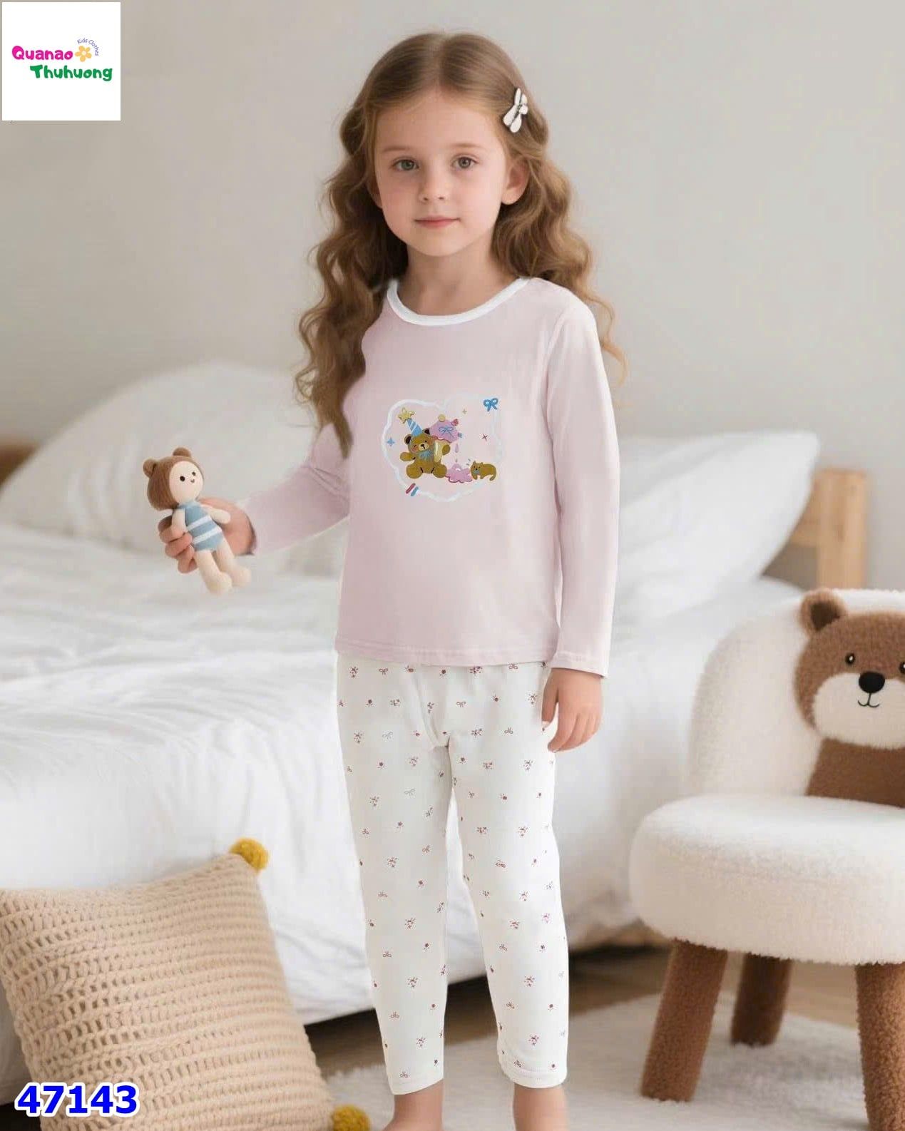 - Áo tay dài màu hồng pastel in hình gấu nhỏ cột nơ cực xinh,