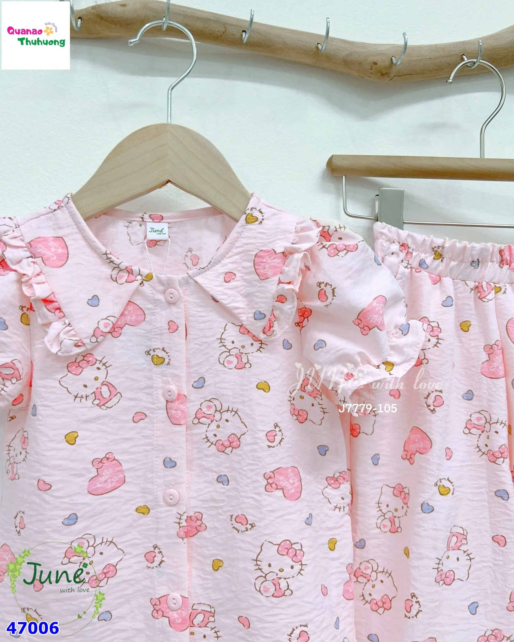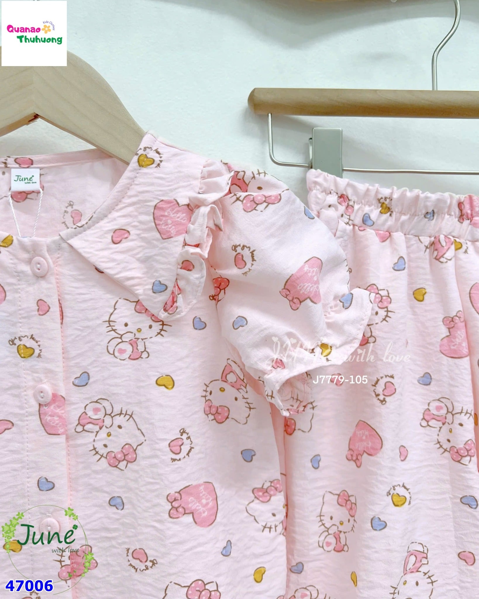 🌸 BỘ DÀI JUNE HỒNG KITTY – MẶC NHÀ SIÊU XINH CHO BÉ GÁI 🌸