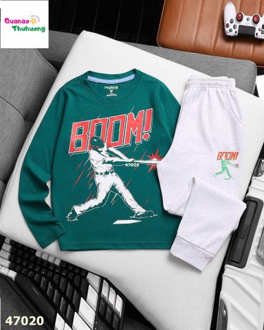 Thiết kế năng động: Áo tay dài kết hợp quần dài, in hình Boom siêu ngầu, tạo điểm nhấn nổi bật, thu hút ánh nhìn.