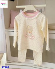 Set đồ tông kem ngọt ngào với hoạ tiết hoa và bé Kitty siêu dễ thương, mang đến cho bé vẻ ngoài đáng yêu và nữ tính.