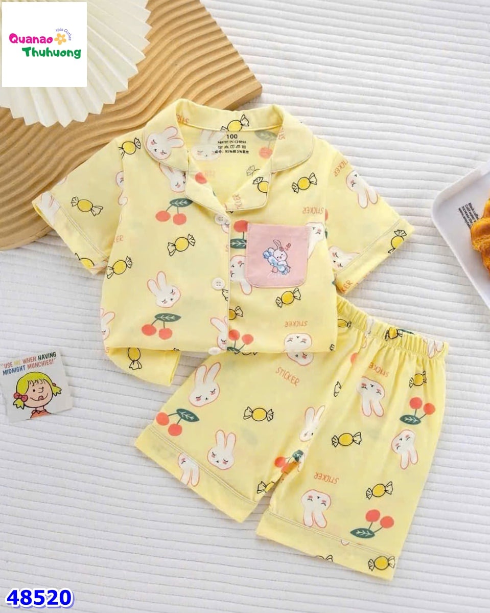 Bộ Pyjama đùi vàng thỏ nổi bật với tông vàng tươi tắn, in hình thỏ dễ thương tạo điểm nhấn xinh xắn 🐰💛 Chất vải mềm mịn, thoáng mát và thấm hút tốt, mang lại cảm giác dễ chịu khi mặc ngủ hoặc sinh hoạt tại nhà.