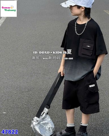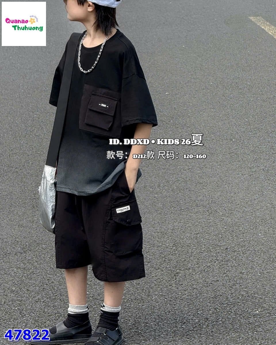 Set áo thun đen in chữ VOGUE phong cách thời trang, phối cùng quần short đồng màu cá tính