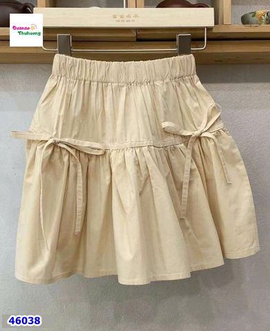 - Chất vải thô mềm, nhẹ tênh mom ạ. Chân váy đính nơ nổi bật