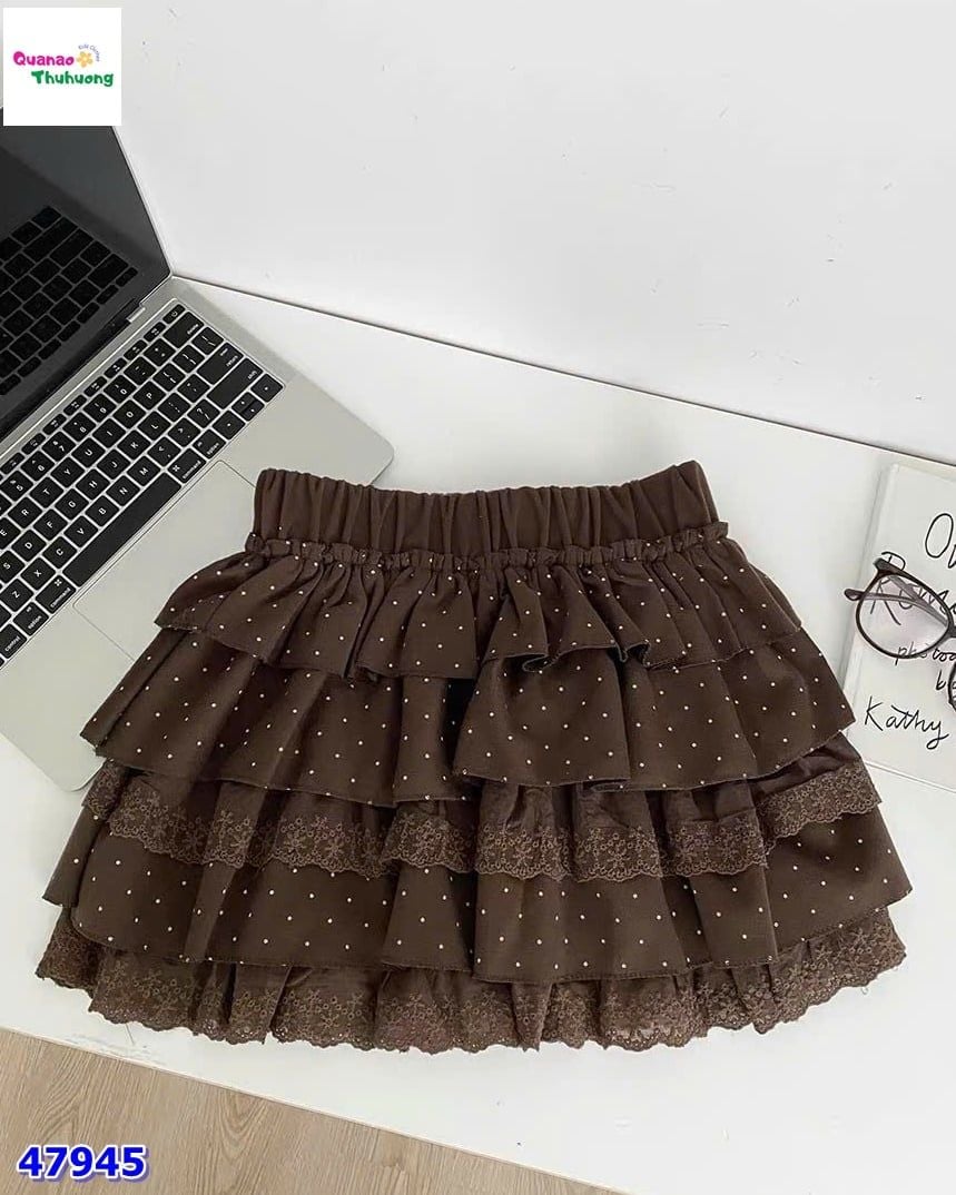 Nền nâu ấm áp phối chấm bi nổi bật, mặc lên rất tôn da