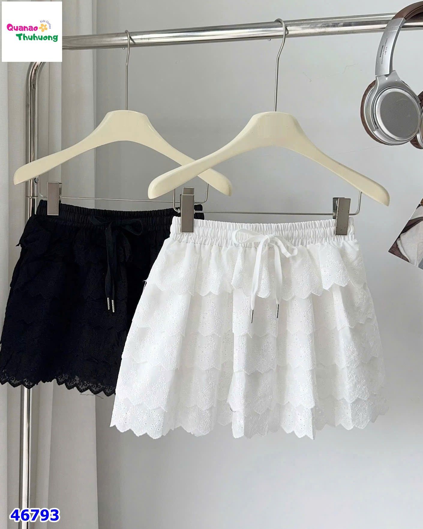 - Mẫu chân váy tầng siêu xinh cho bé gái, thiết kế ren trắng nhiều tầng bồng bềnh, cực kỳ dễ thương