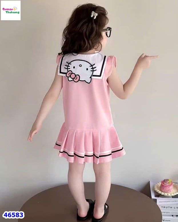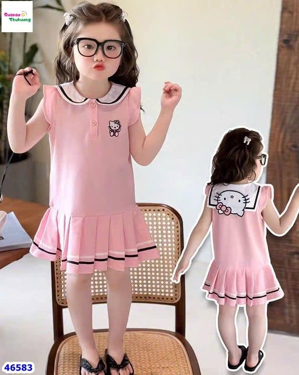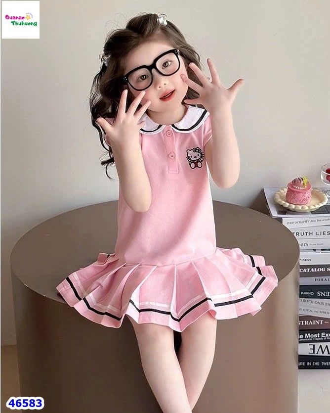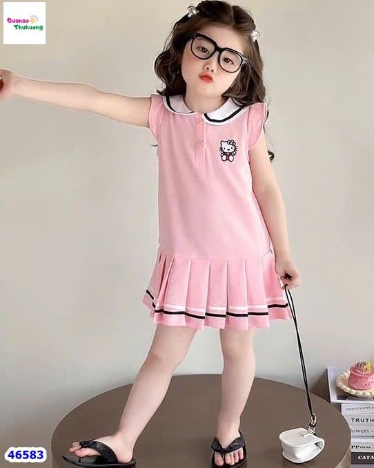 Đầm bé gái màu Hồng Kitty xếp ly xực xinh yêu
