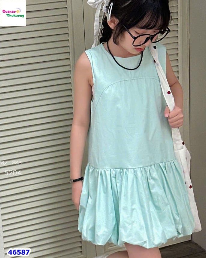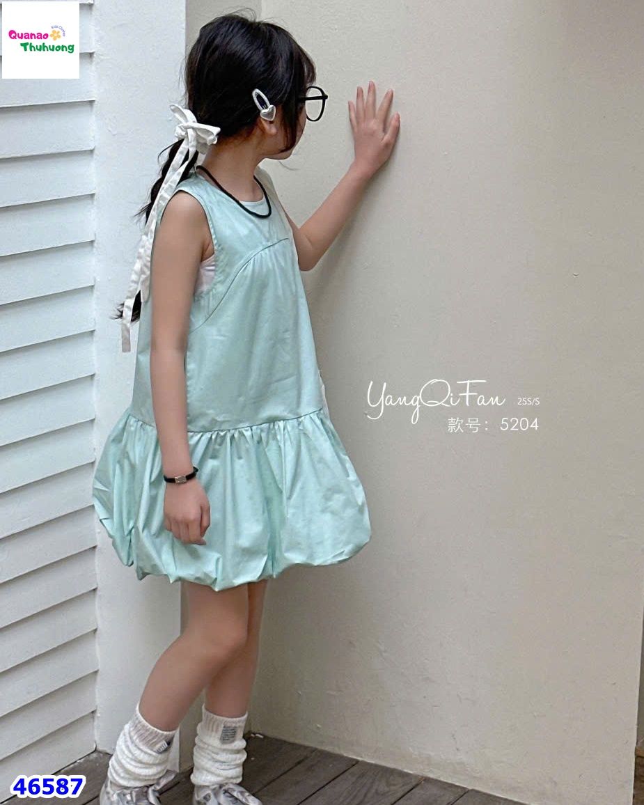 Đầm bí sát nách xanh lá - cho bé gái xinh như công chúa