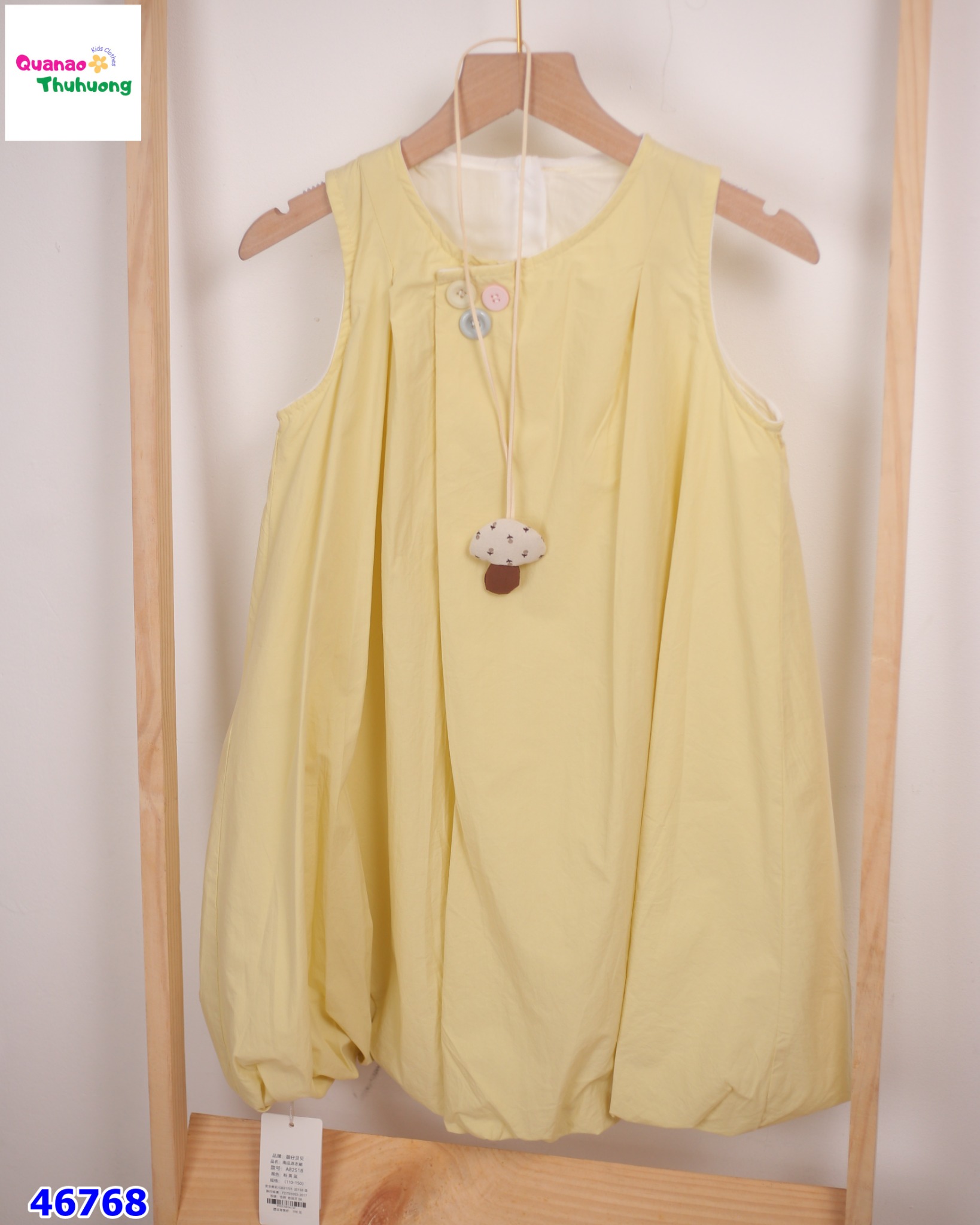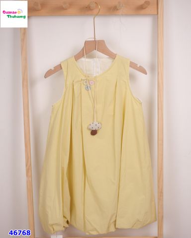 Chiếc đầm bí vàng thêu nút mang phong cách đáng yêu pha chút cổ điển, được thiết kế với kiểu dáng xòe nhẹ phần thân dưới, sát nách, màu vàng chanh tươi sáng giúp bé nổi bật trong mọi dịp.