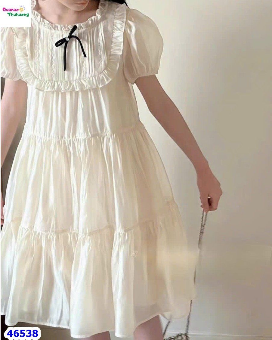 Đầm kem đính nơ đen KHUYẾN MÃI - ƯU ĐÃI