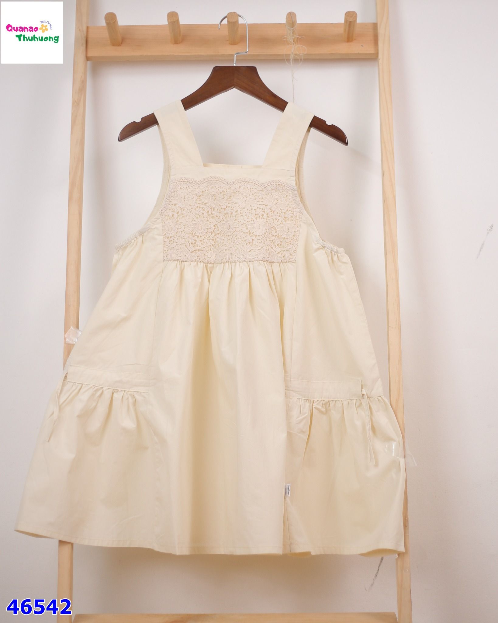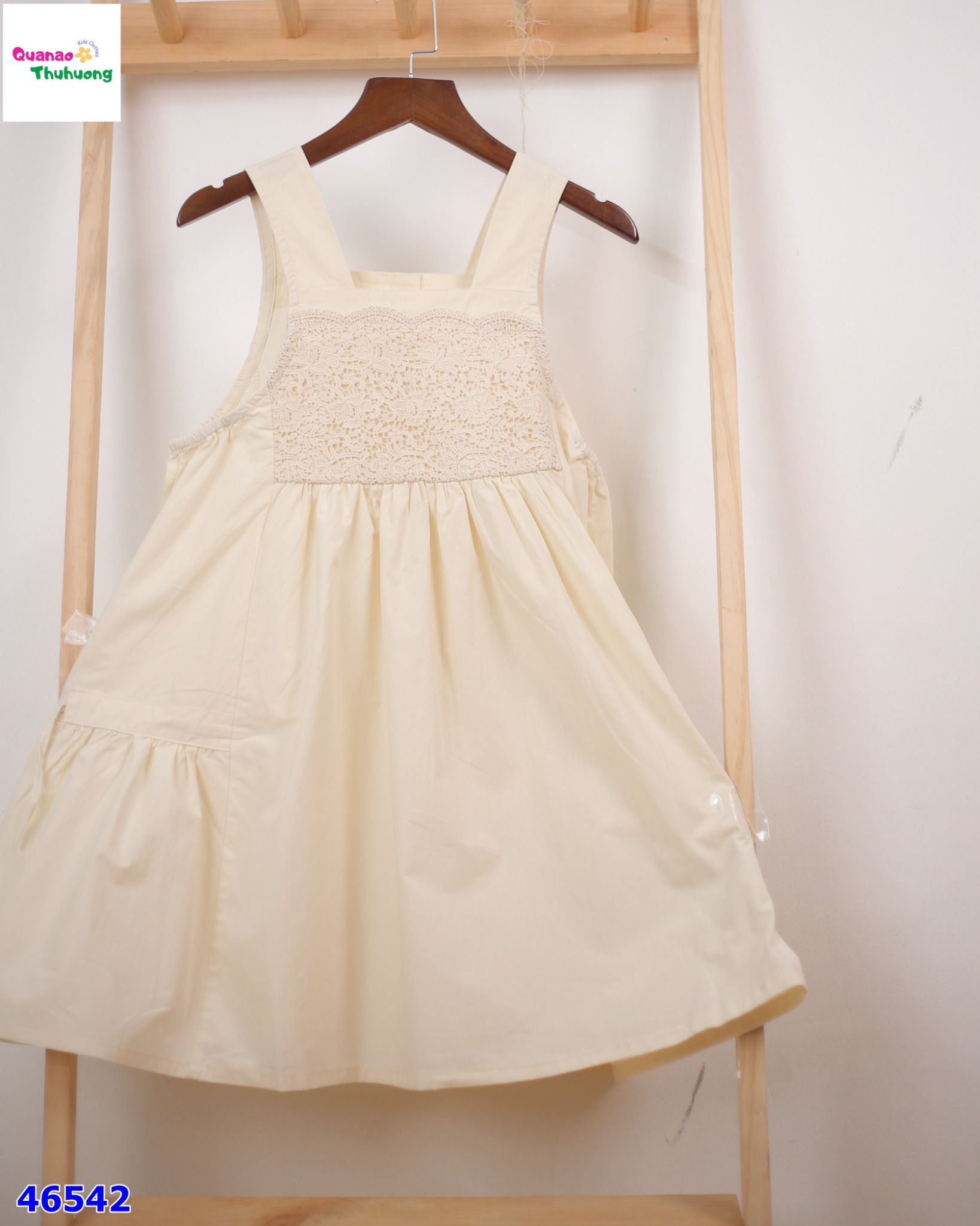 - Màu kem nhẹ nhàng kết hợp với viền hoa, tạo nên chiếc đầm siêu “chanh sả” cho bé yêu!