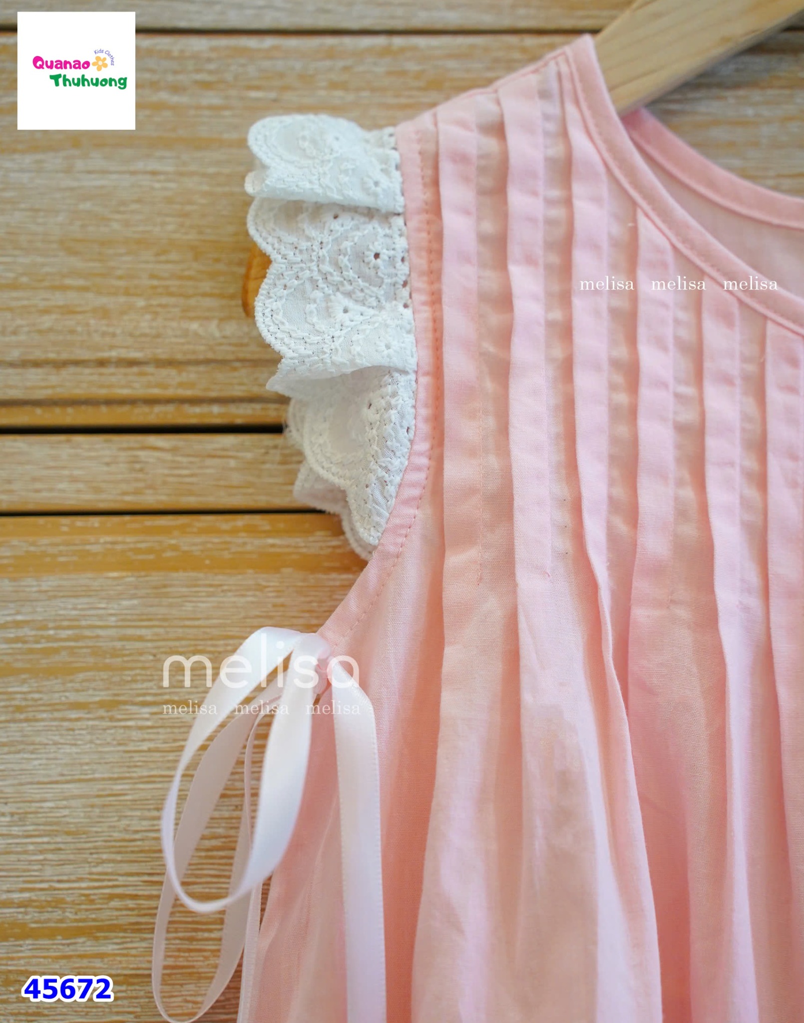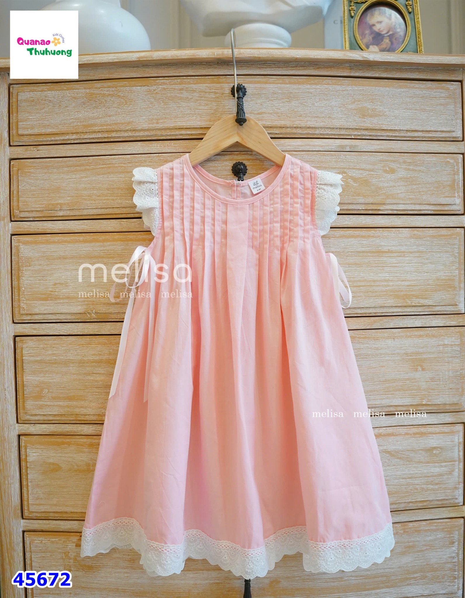 - kiểu dễ mặc - mặc dễ đẹp nè. Ngực xếp ly tinh tế - tay và chân váy phối ren siêu sang. Đính nơ thêm phần điệu đà.