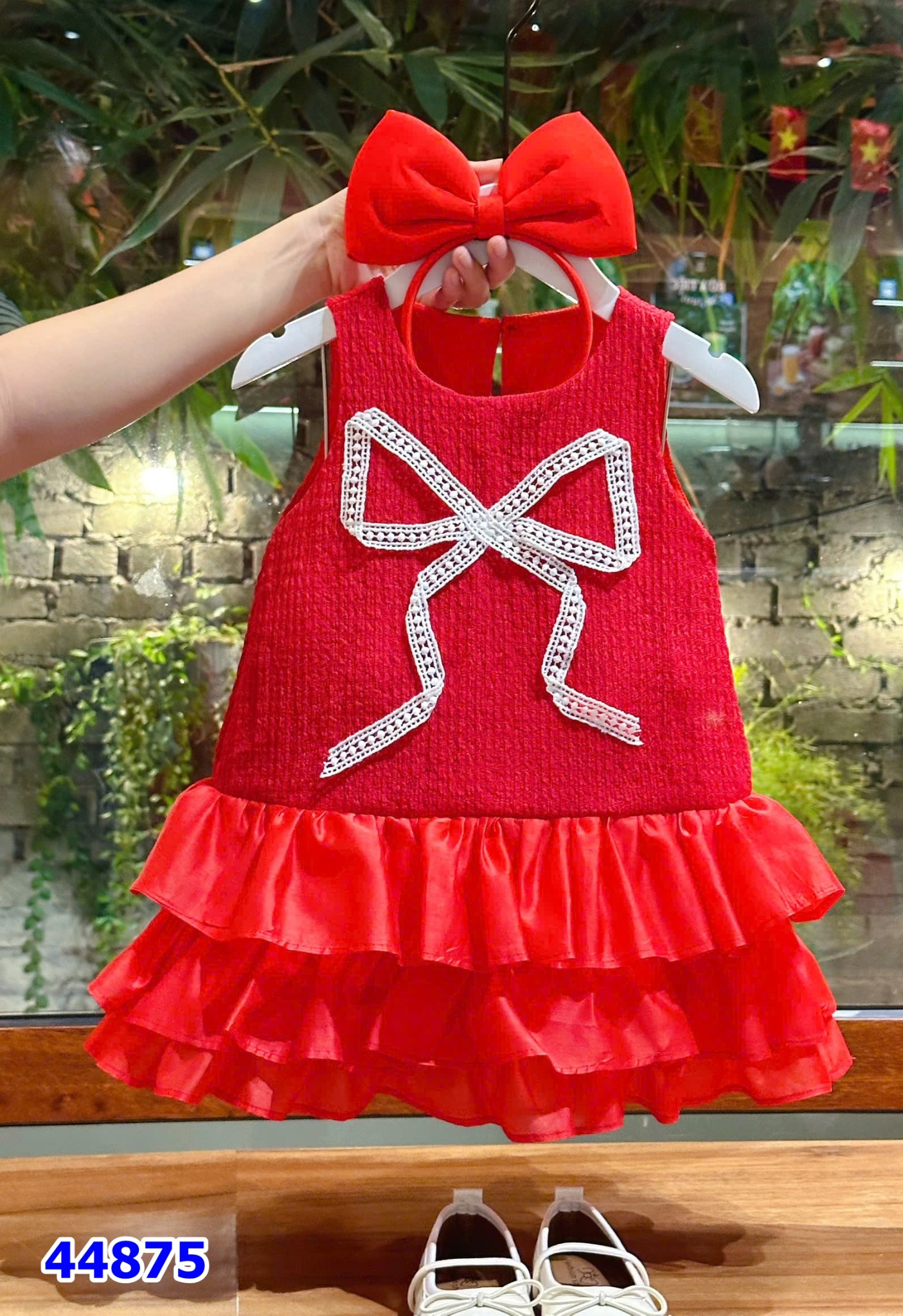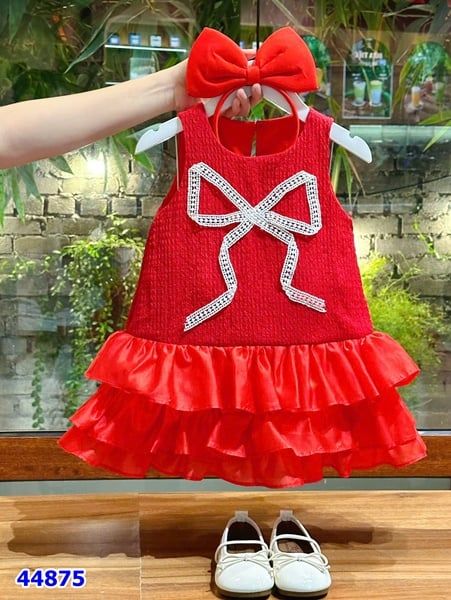 Đầm Sofia đỏ nơ+cài tóc đính nơ cưng xĩu