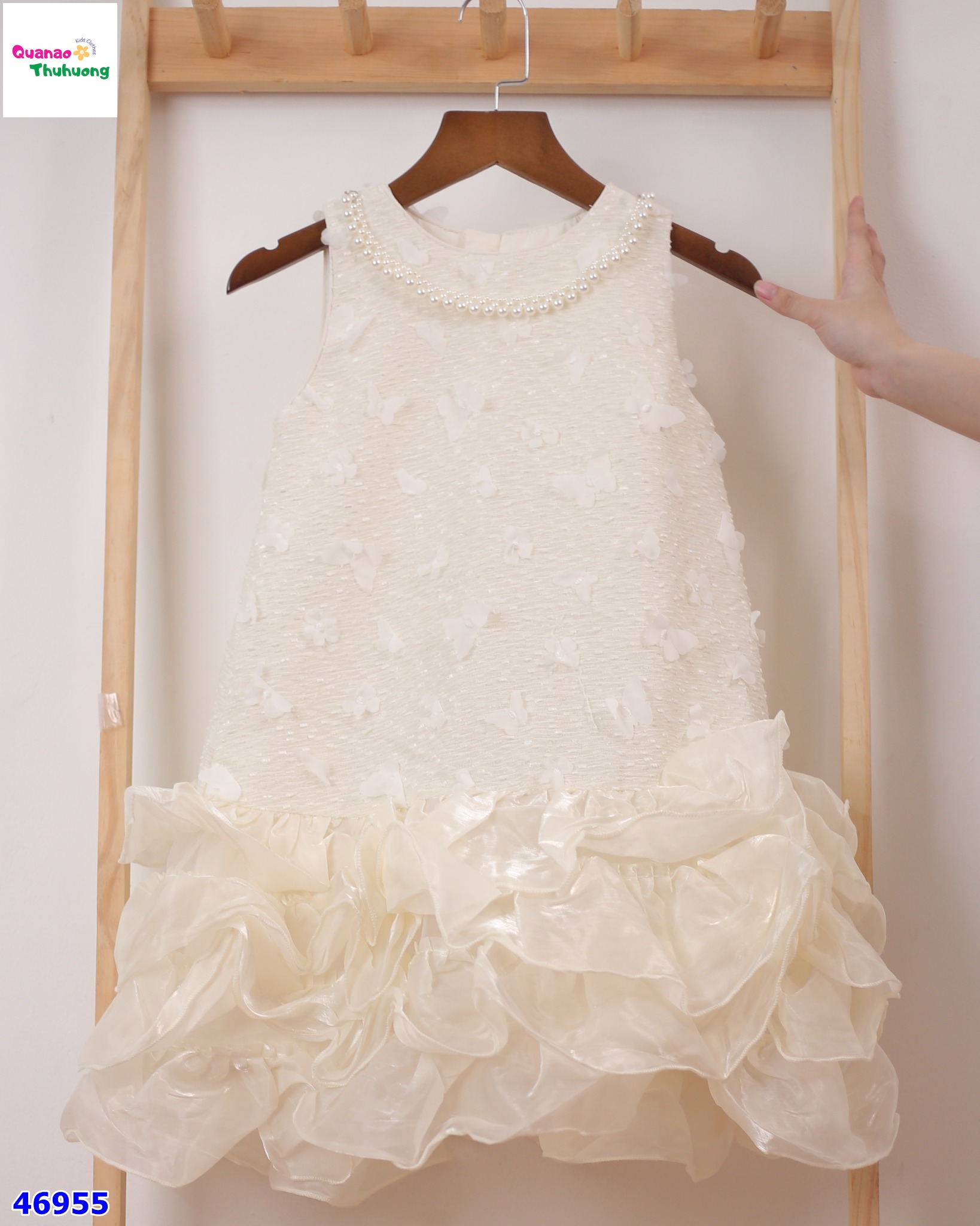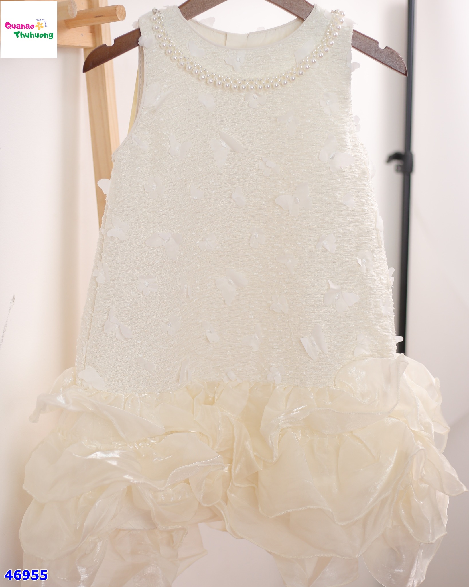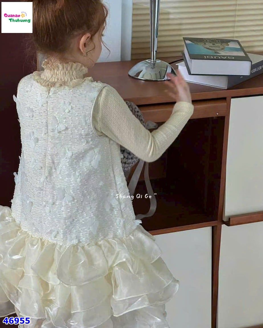 ✨ ĐẦM TIỆC KEM THÊU HOA BƯỚM – XINH NHƯ CÔNG CHÚA NHỎ ✨