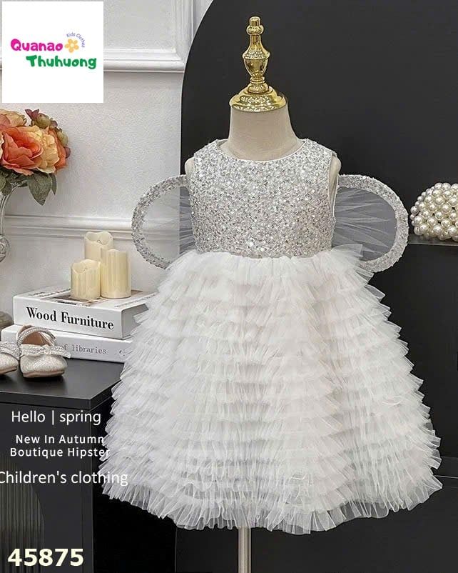 - Đặc biệt, đầm được điểm xuyết thêm đôi cánh nhỏ phía sau, mềm mại như cánh bướm. tăng thêm phần mộng mơ và huyền ảo.